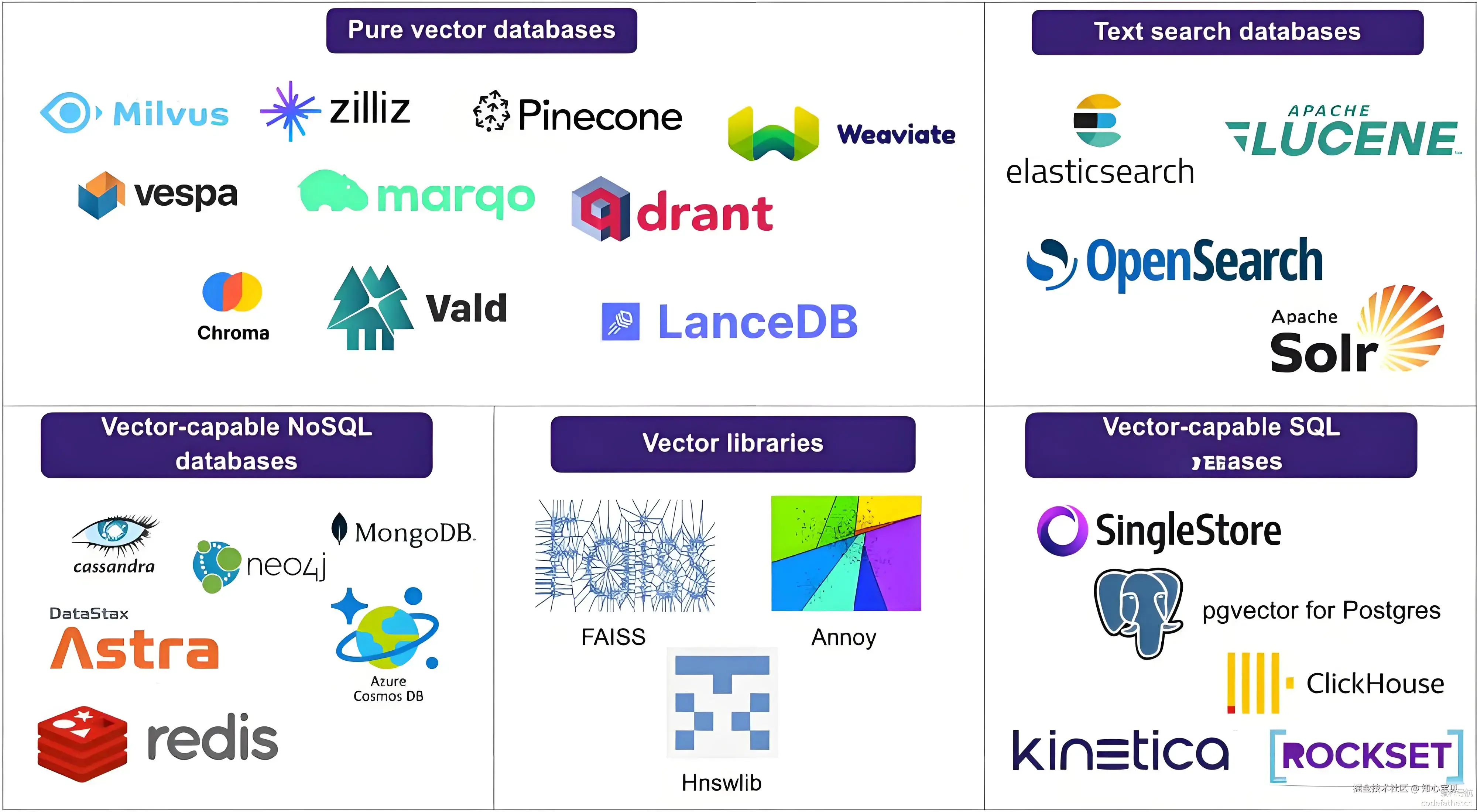 与传统数据库不同(可通过插件安装实现,如:PGVector、Redis Stack 的 RediSearch),优化了高维向量的存储和检索,如:Milvus、Pinecone
