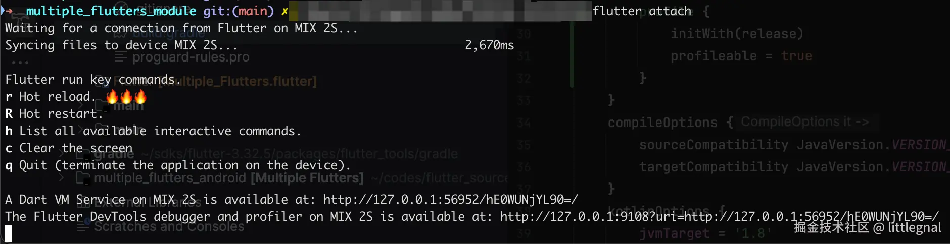 在Android Studio运行App之后,然后在terminal执行flutter attach就可以使用Flutter DevTools了。