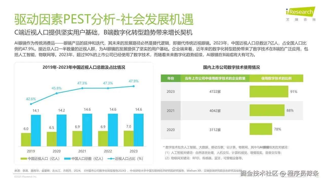 2025年,在人工智能与空间技术深度融合的产业浪潮下,中国AI眼镜行业持续突破创新边界,在医疗、工业、消费级场景呈现高质量、多极化发展态势和高速发展的状态。供给端,随着端侧大模型推理效率提升与光波导良产率突破,消费级AI眼镜成本下降,激发硬件生态繁荣。需求端,消费者对AI眼镜的需求从基础功能向多元应用场景升级,推动AI眼镜市场蓬勃发展。为了理清AI眼镜在中国市场的发展脉络、发展程度,消费者对AI眼镜的购买需求与偏好。艾瑞数智启动《2025年AI眼镜行业研究报告》项目,旨在全面剖析AI眼镜的经济价值与发展潜力,通过梳理AI眼镜的发展脉络、产业链图谱及消费者偏好,洞察AI眼镜的市场价值,剖析消费侧需求和付费动机等,为行业从业者、投资者及相关研究者提供深度的行业洞察,助力中国AI眼镜产业的健康发展。
