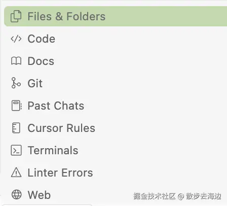在 Cursor 中 context 包含了非常多的种类