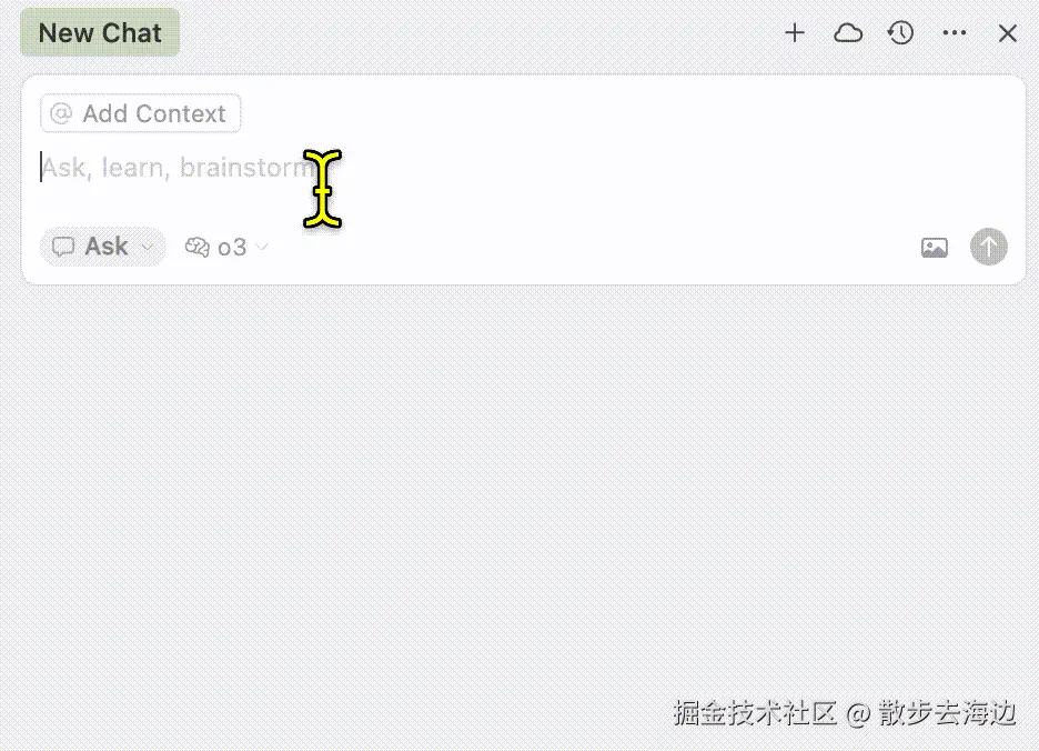Ask 顾名思义就是询问、对话的方式,Cursor 中 Ask 模式主要用来与 AI 进行多轮的对话,最终得出某个结论,或者达成一致意见。它有以下特点:
