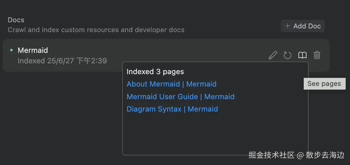 Docs 只接受 url 链接,这意味着你添加到 Docs 中的文档最好是 AI 能够爬取内容的在线文档站点。
