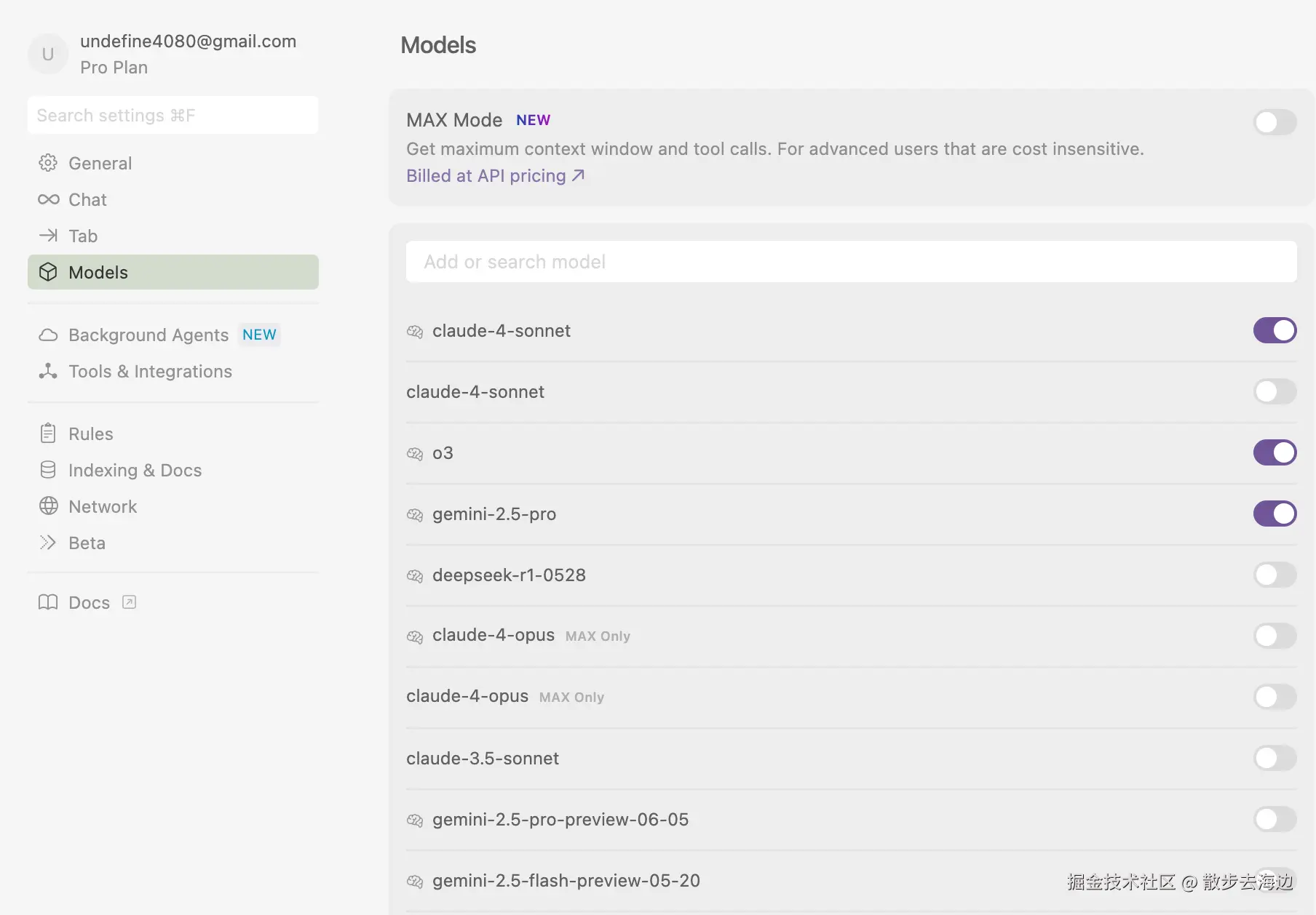 如果你发现点击 add model 之后有些模型不在列表里面,可能是你没有打开启用开关。你可以在设置里面启用,通常来说只启用几个最常用的就行,比较旧的模型就不用开了,原则就是“喜新厌旧”