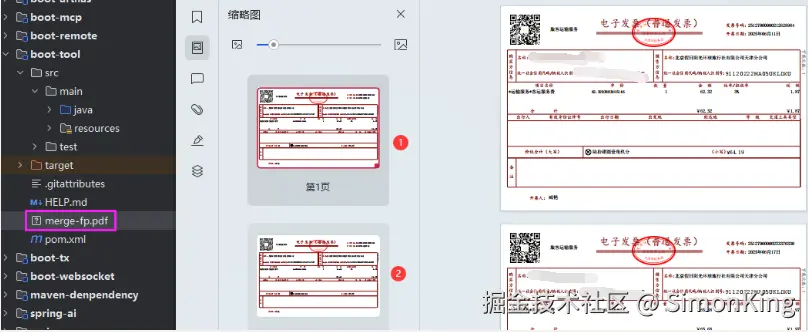 PDF合并的关键类是:org.apache.pdfbox.multipdf.PDFMergerUtility
