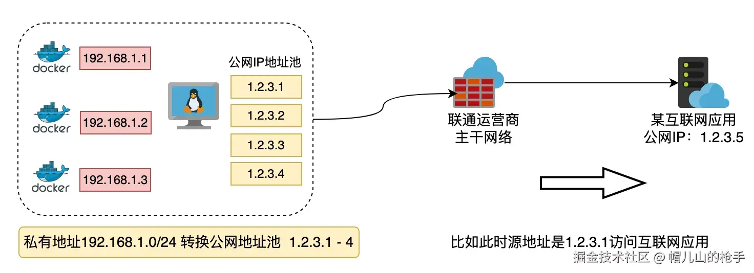 说明:是指将内部网络的私有IP地址转换为公用IP地址时,IP地址是不确定的,是随机的,所有被授权访问上互联网的私有IP地址可随机转换为所定义的IP地址。
