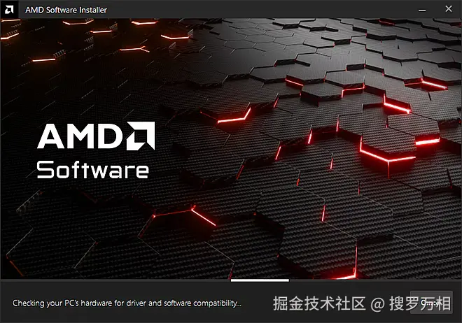 AMD 软件安装程序应自动启动并检查系统的硬件兼容性,然后从 AMD 获取检测到的设备的最新驱动程序版本。