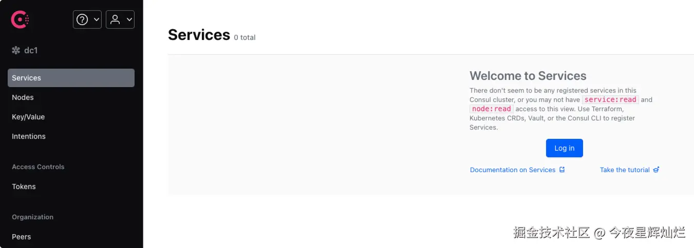 启动完成之后,服务器访问 127.0.0.1:8500出现如下界面则启动成功