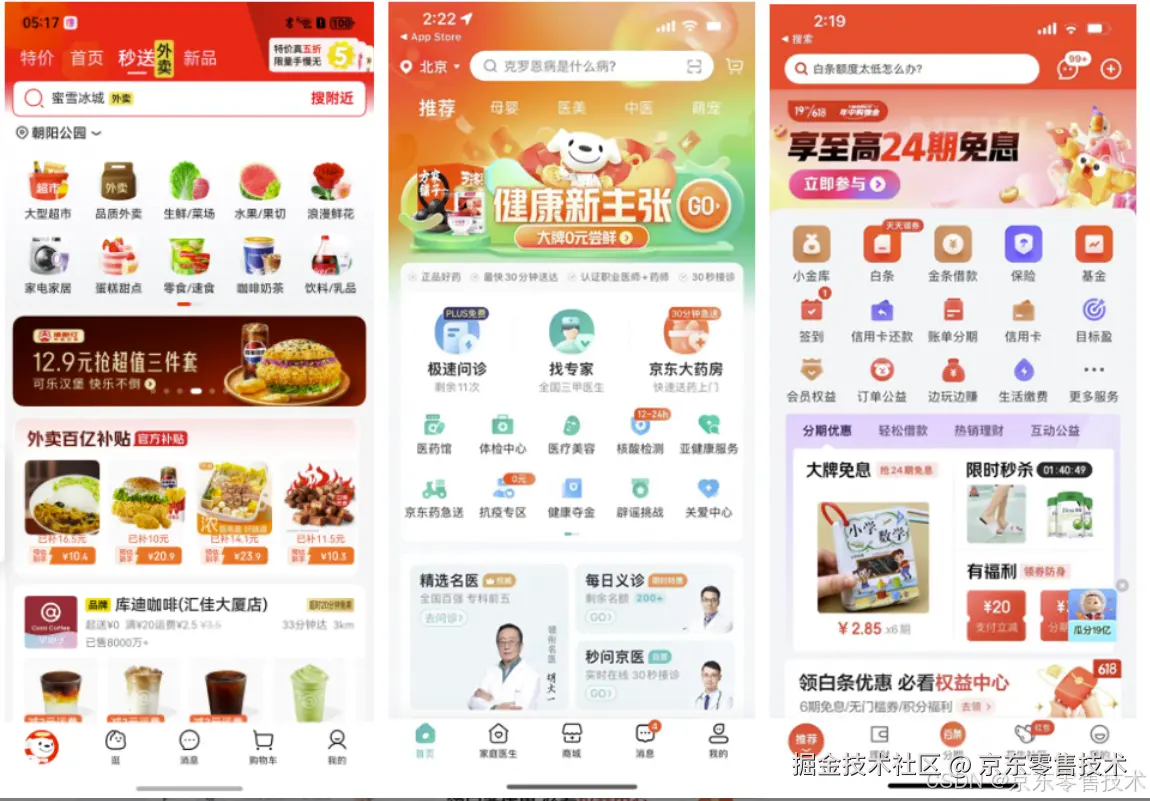 京东小程序容器是京东及其关联App的重要组成部分,承载了多种内部和外部业务。其中近期热门的模块秒送外卖、以及常用的买菜、超市店铺、奢侈品店铺等均属于小程序。