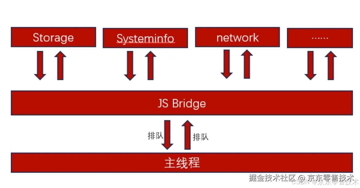 小程序页面加载/活跃过程中存在大量的JS API的调用。通常由JS线程发起API调用,经过主线程执行后生成结果数据,再将结果返回。因此,会出现如下性能瓶颈点。