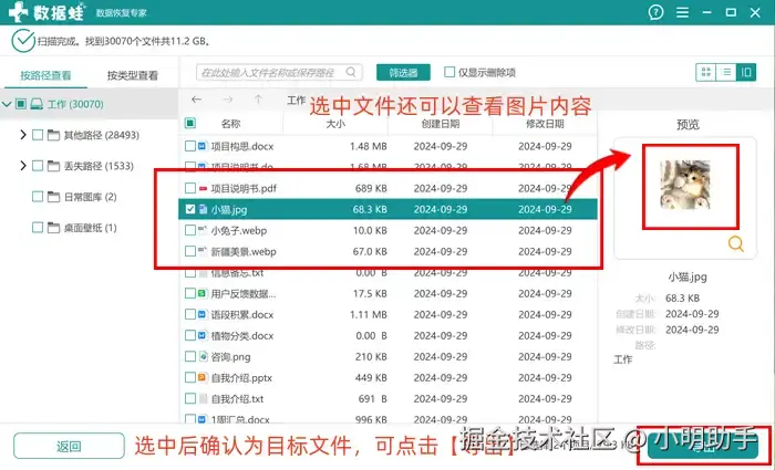 备注:如果通过软件扫描出来的文件过多,在扫描列表的上方我们可以选择【搜索框】、【筛选器】等其他辅助工具帮助我们缩小搜寻范围。