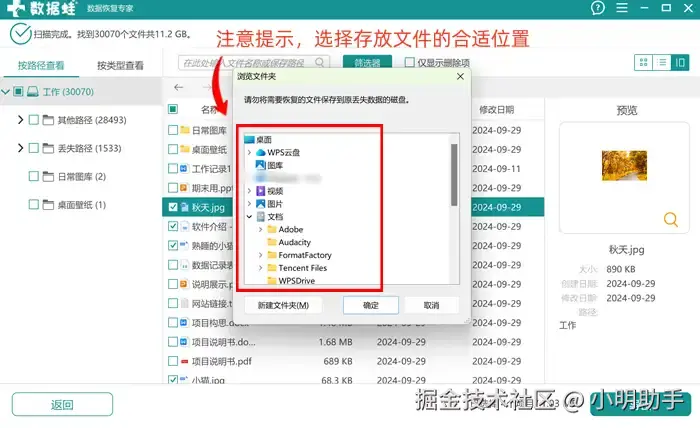 步骤3: 在最后,我们还需要选择恢复文件的存放位置。