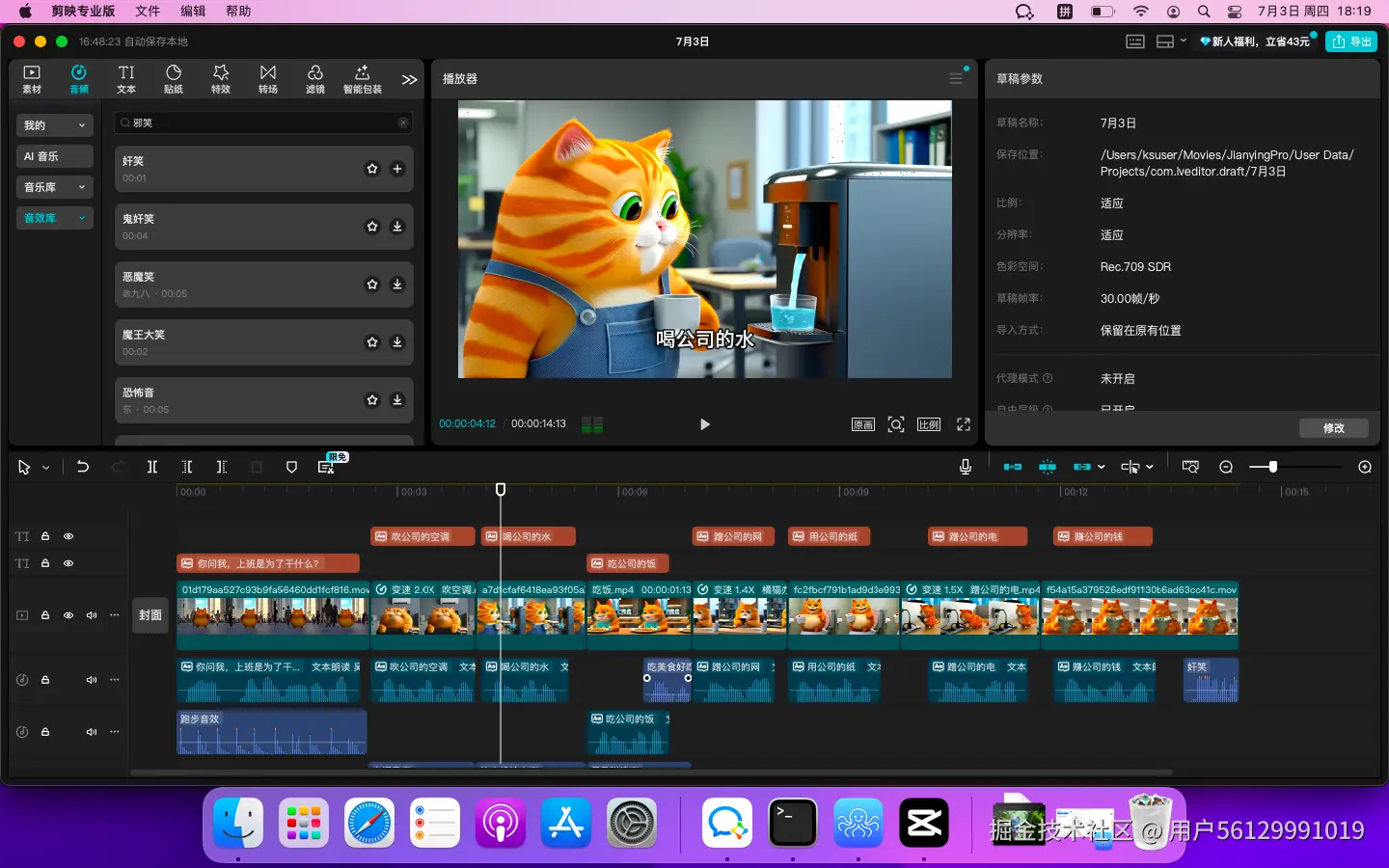 2、分别生成多个镜头,提示词技巧是:3D动画视频,一只橘猫在...... 前面不变,后面根据你想要的场景进行修改,如3D动画视频,一只橘猫在公司吹空调。