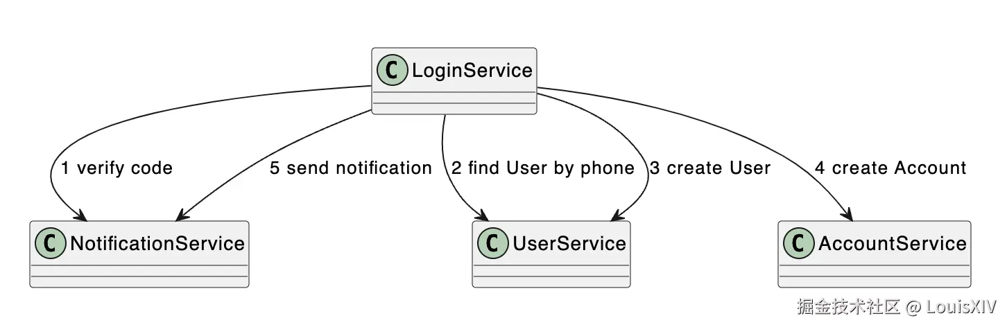 我们尝试用时序图画一下这个过程,假设这时只有一个Service层: