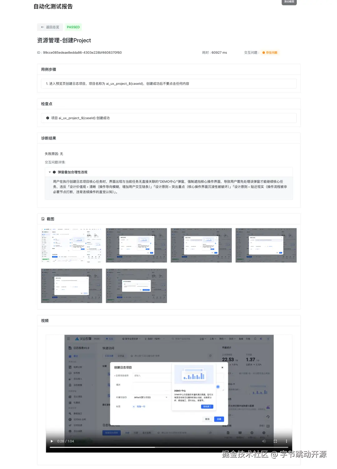 这里我们可以看到有一条记录,从最终目标上来看是成功完成的,但过程中是存在交互问题的。这也证明了 E2E 自动化测试通过,不代表系统没有交互问题。