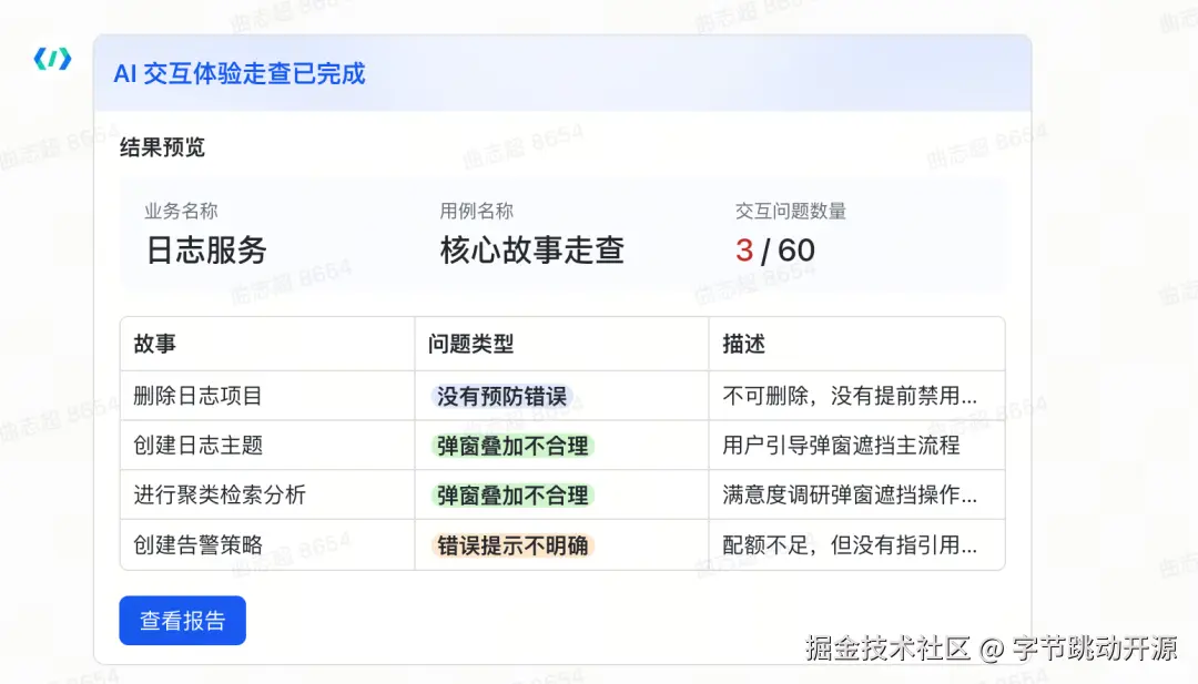 通过这套评价体系,最终「交互专家 AI」能够从“用户”的执行过程中识别出多种交互问题: