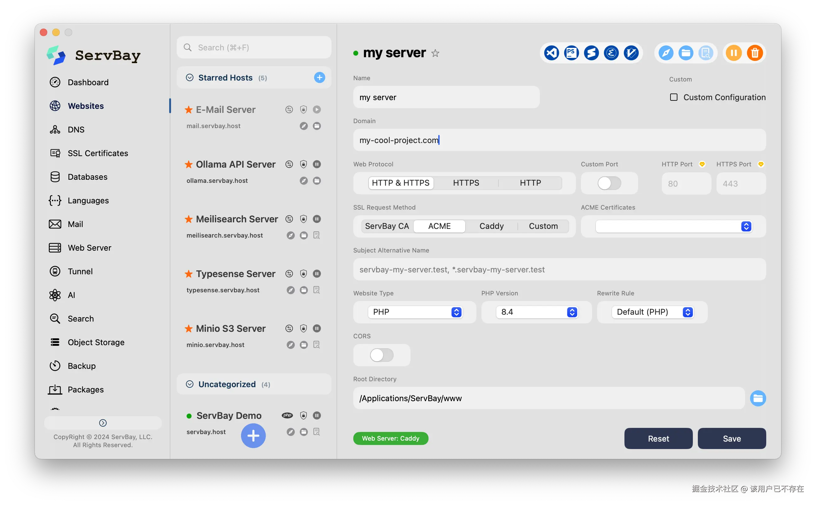 ZeroSSL,Let's Encrypt和Google Trust Services签发的证书,而且ServBay还能自动续期,非常省心。 - 根目录: 指定网站文件存放的位置。