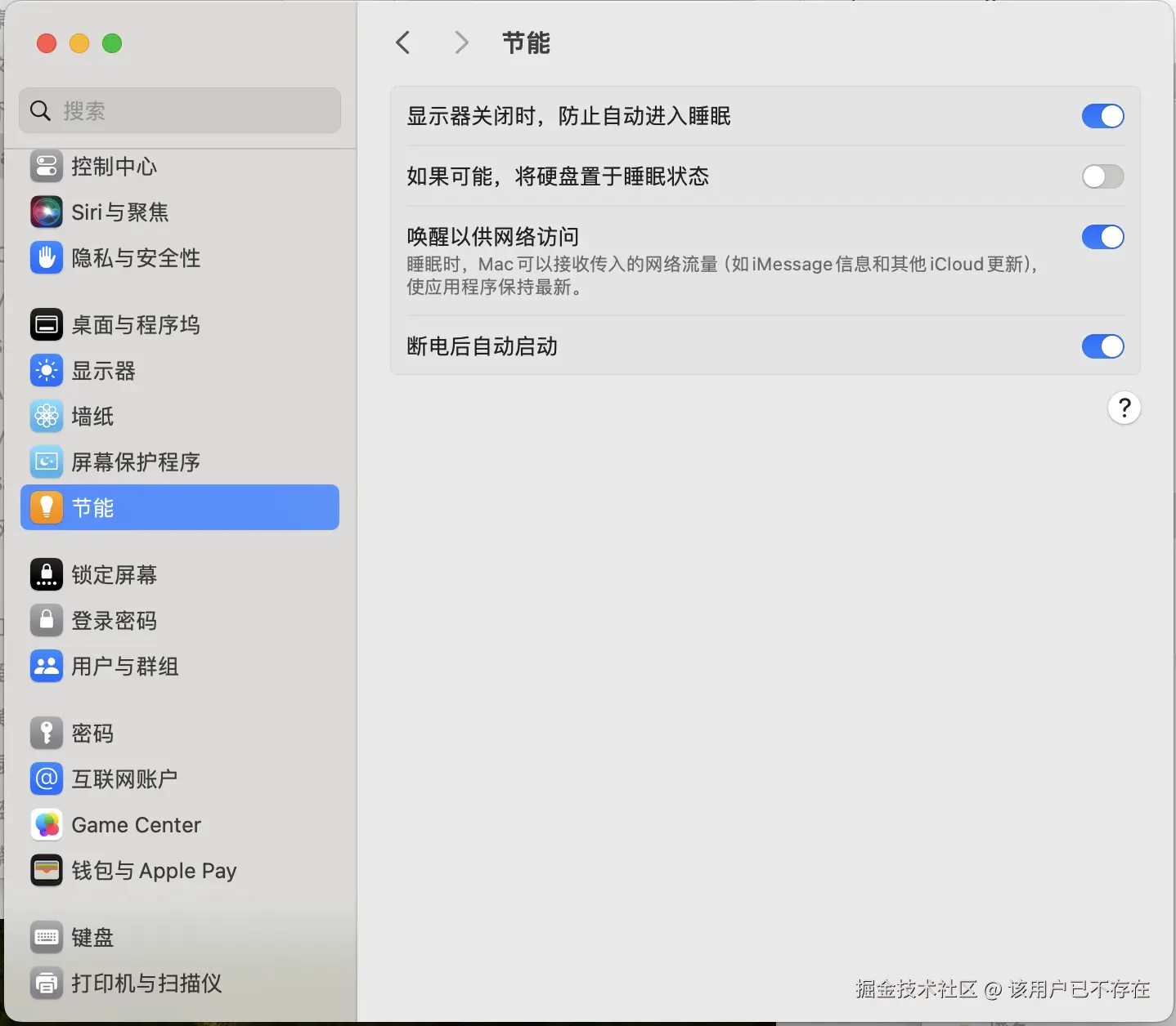 系统设置>节能,勾选 “断电后自动重新启动” 。这样万一停电,来电后它能自己醒过来。还要把防止自动睡眠给勾选上。 -