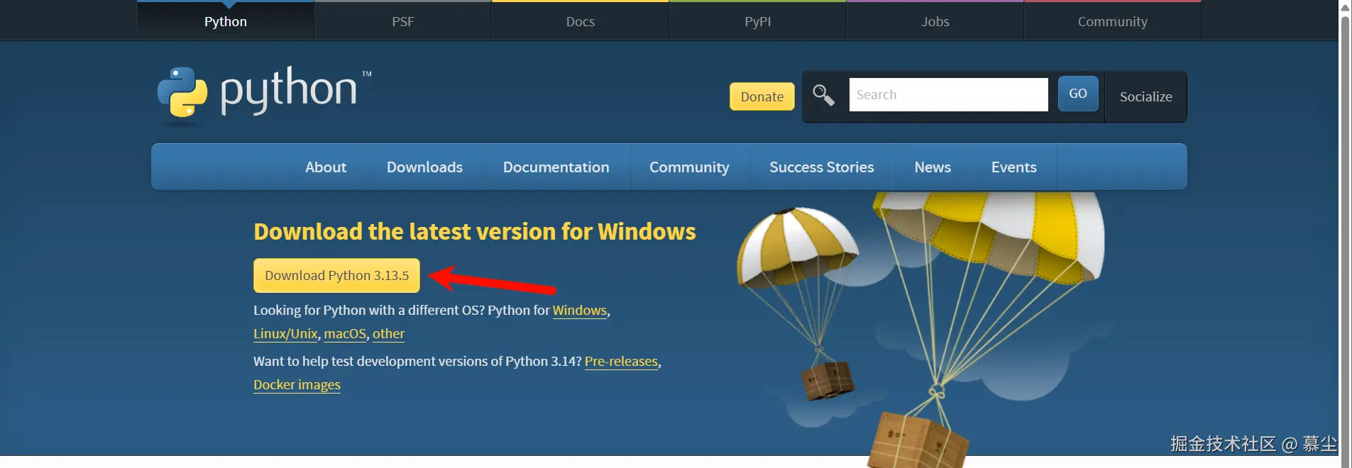 如果你不在意版本的化可以直接点击图中箭头的地方下载。如果你想安装其他的版本可以进入这个地址选择版本下载。