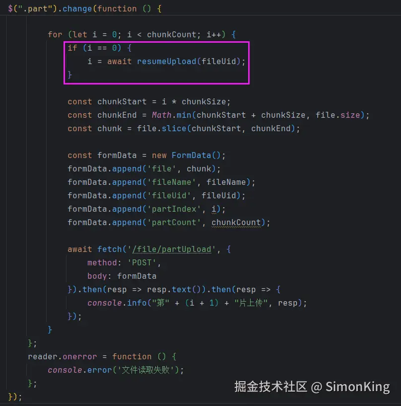 分片上传的逻辑不变,只是增加依次已上传分片的位置查询而已。
