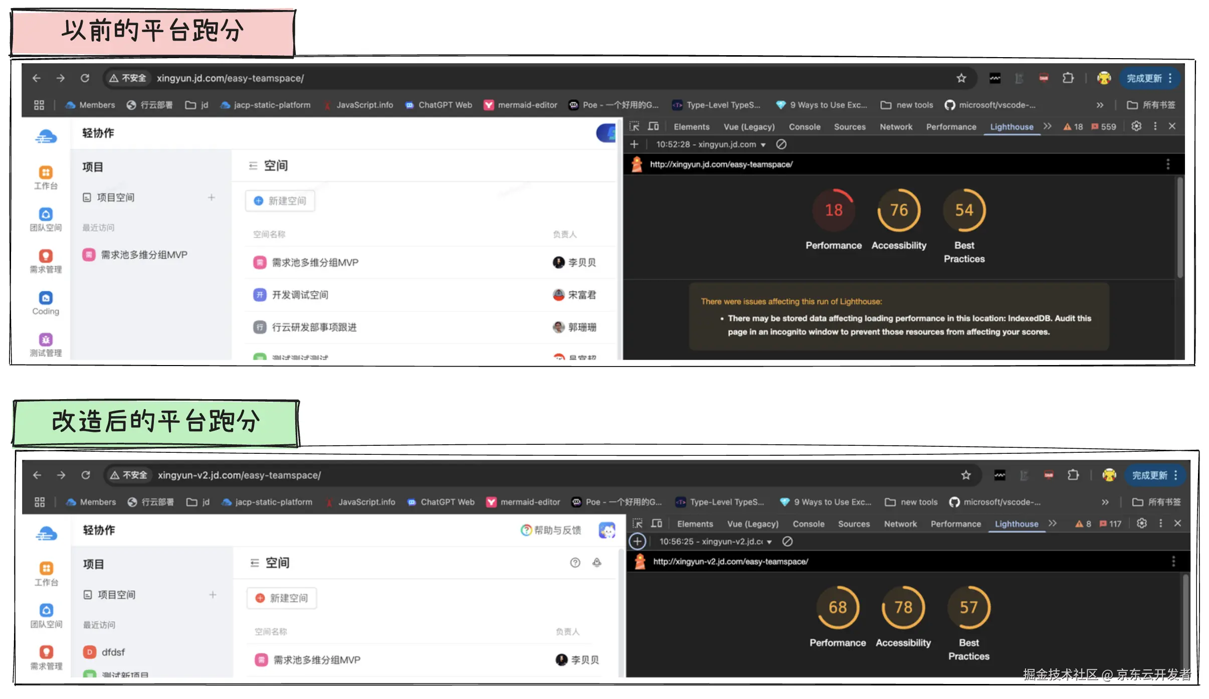 ▪新旧平台Lighthouse同一应用跑分对比
