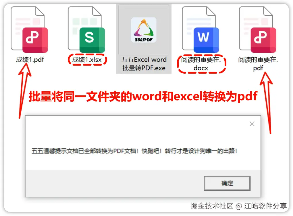 你只需要把需要转换的Word或Excel文件与该软件放在同一个文件夹里,运行软件后,它会自动完成所有转换任务,完全不需要手动干预。