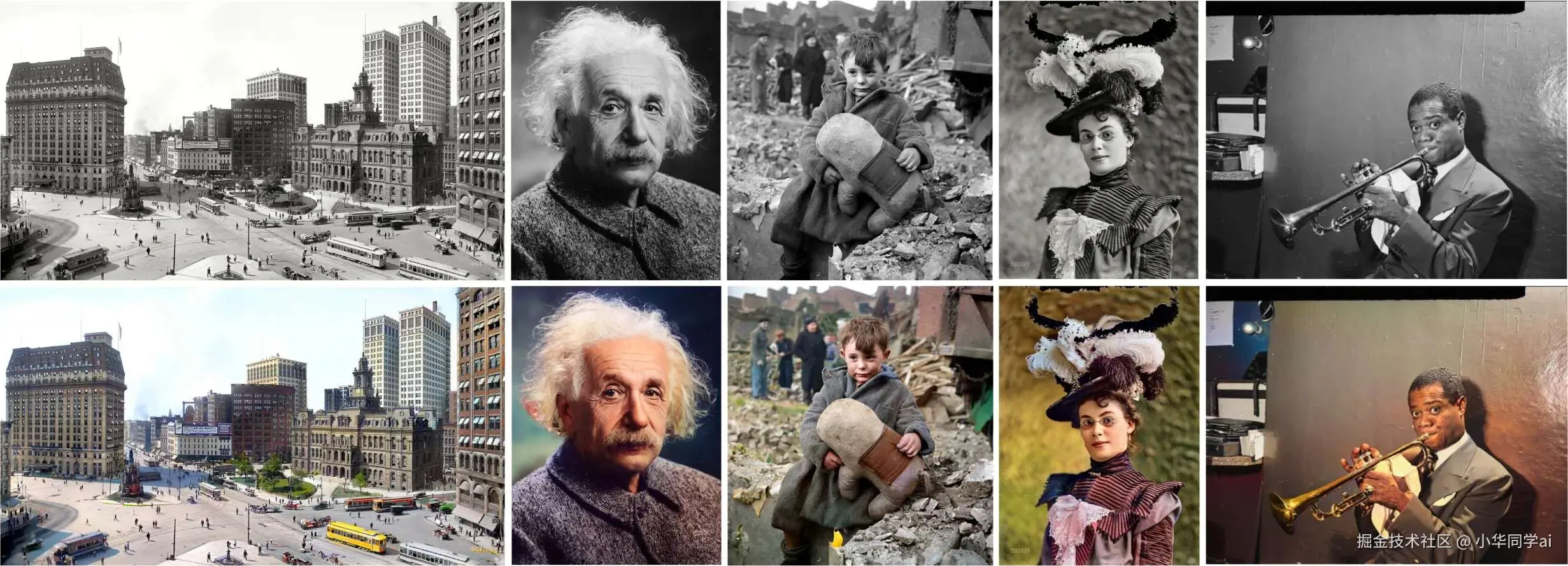 - 黑白历史照:老照片缺色但蕴含高历史价值,传统着色容易失真、色彩偏差剧烈。