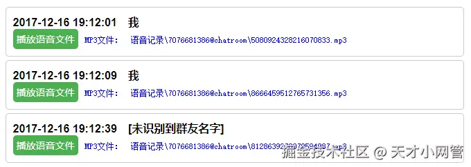 十一、稍等一下它导出,导出成网页后,就可以去导出的文件夹那里查看了,双击聊天记录文件,就可以看到聊天内容,其中语音可以在页面中直接播放