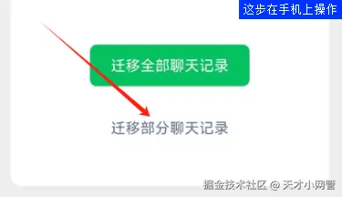 五、如果你要迁移和导出所有的聊天记录,那下一个页面选择绿色的【迁移全部聊天记录】按钮,如果你只需要导出部分聊天的记录,那就选择【迁移部分聊天记录】,如下图