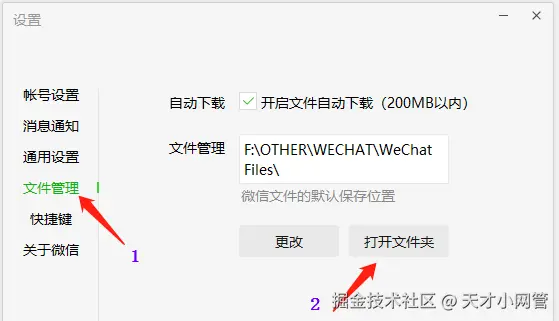 六,第一个格子,是【微信个人数据文件夹】,这个文件夹怎么找到呢,很简单,点微信窗口左下角的【菜单】-【设置】