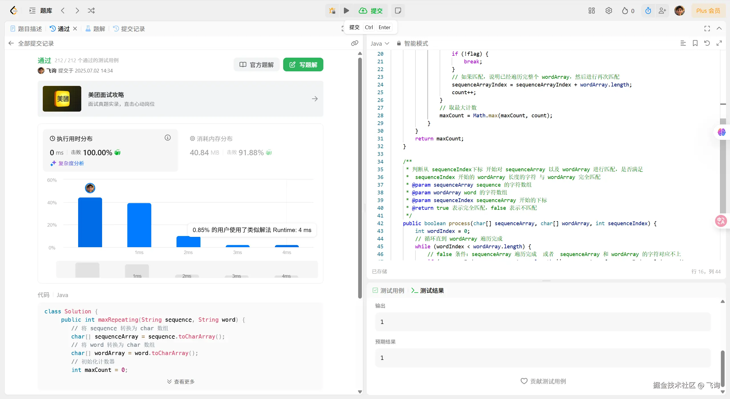 * 0 ms 击败 100.00% 消耗内存分布 40.83 MB 击败 92.31%