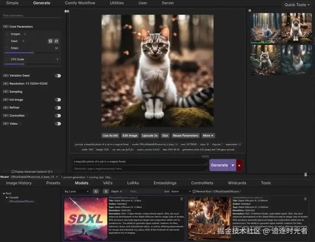 - 项目简介: SwarmUI (原 StableSwarmUI)是一个基于 .NET 开源(MIT license)、模块化 AI 图像生成 Web 用户界面,注重让强大工具易于访问、高性能及可扩展性。支持 AI 图像模型(如Stable Diffusion、Flux等),以及AI视频模型(如LTX-V、Hunyuan Video、Cosmos、Wan等)。