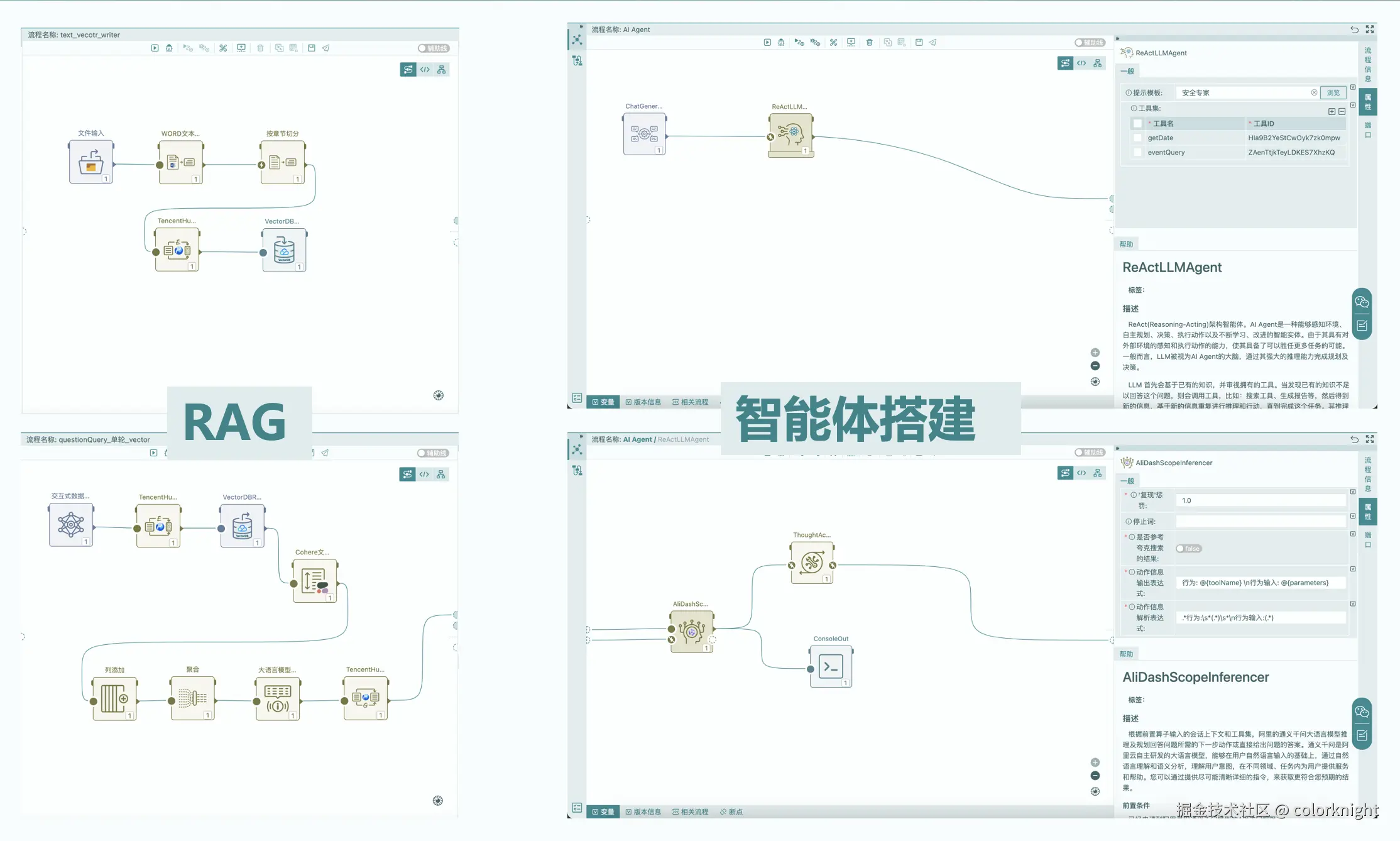 数据处理、模型训练都就绪后,最让人期待的就是构建智能应用。HuggingFists 提供了丰富的低代码工具和对大模型的全面支持,让大模型不再是「实验室玩具」,而是可以真正落地的「超级大脑」。