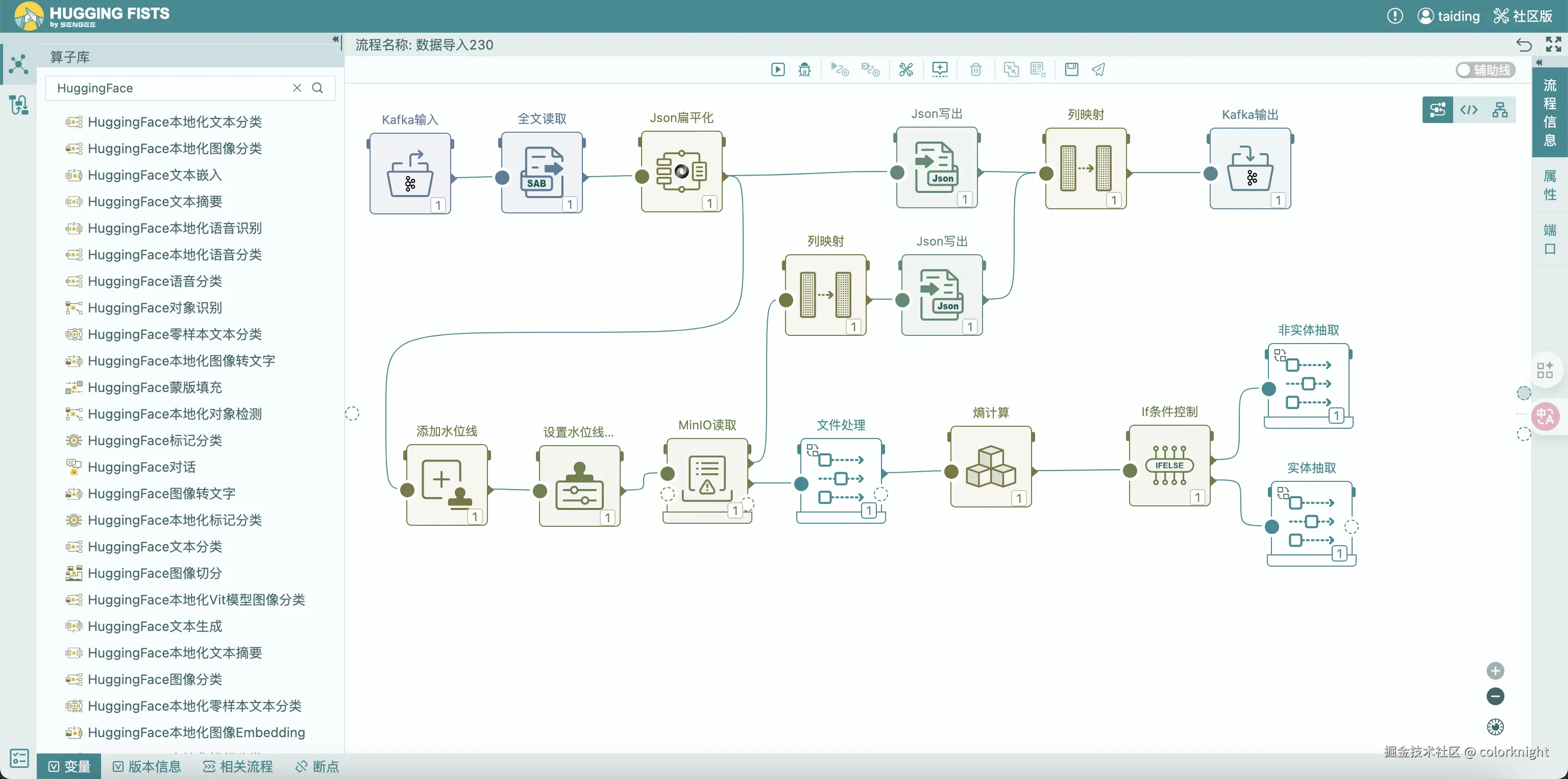 虽然目前出于算子开发复杂度的考虑,还没有完全开放标准,但开发者已经可以通过 HuggingFists 提供的 API 接入能力,或使用 Python 脚本算子进行功能扩展,先一步体验更多自由度。