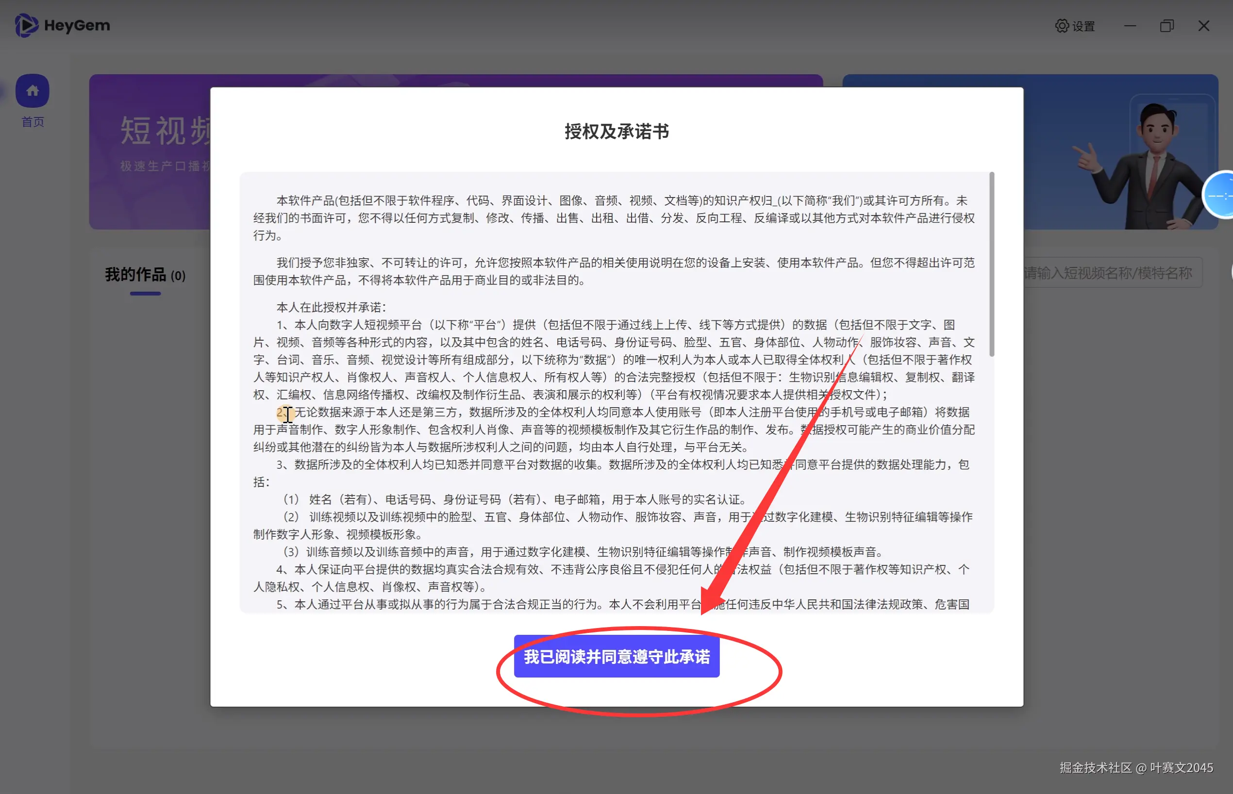 然后会跳出heygem的这个界面。 点击“同意”既可