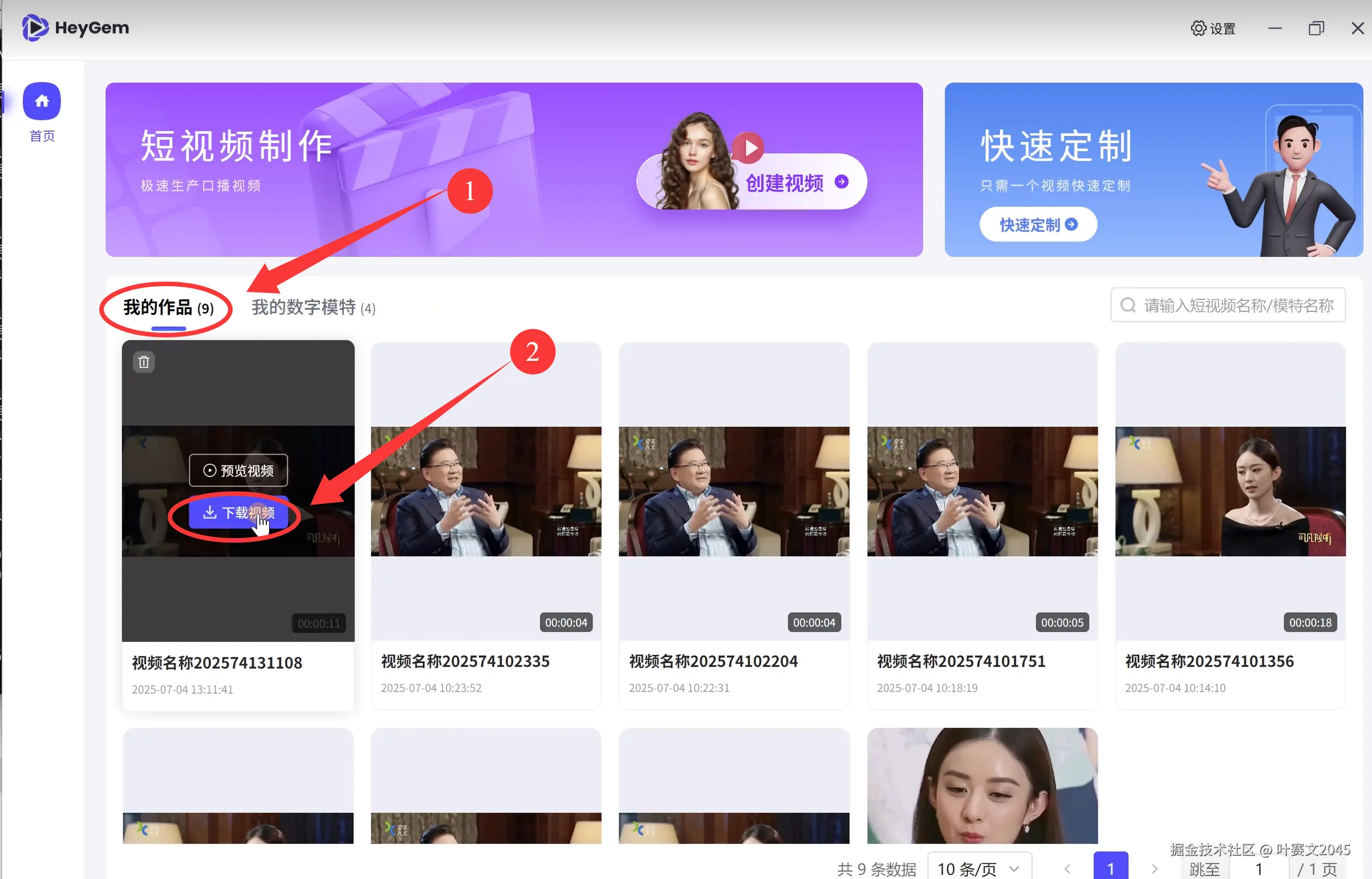 ① 点击“我的作品”