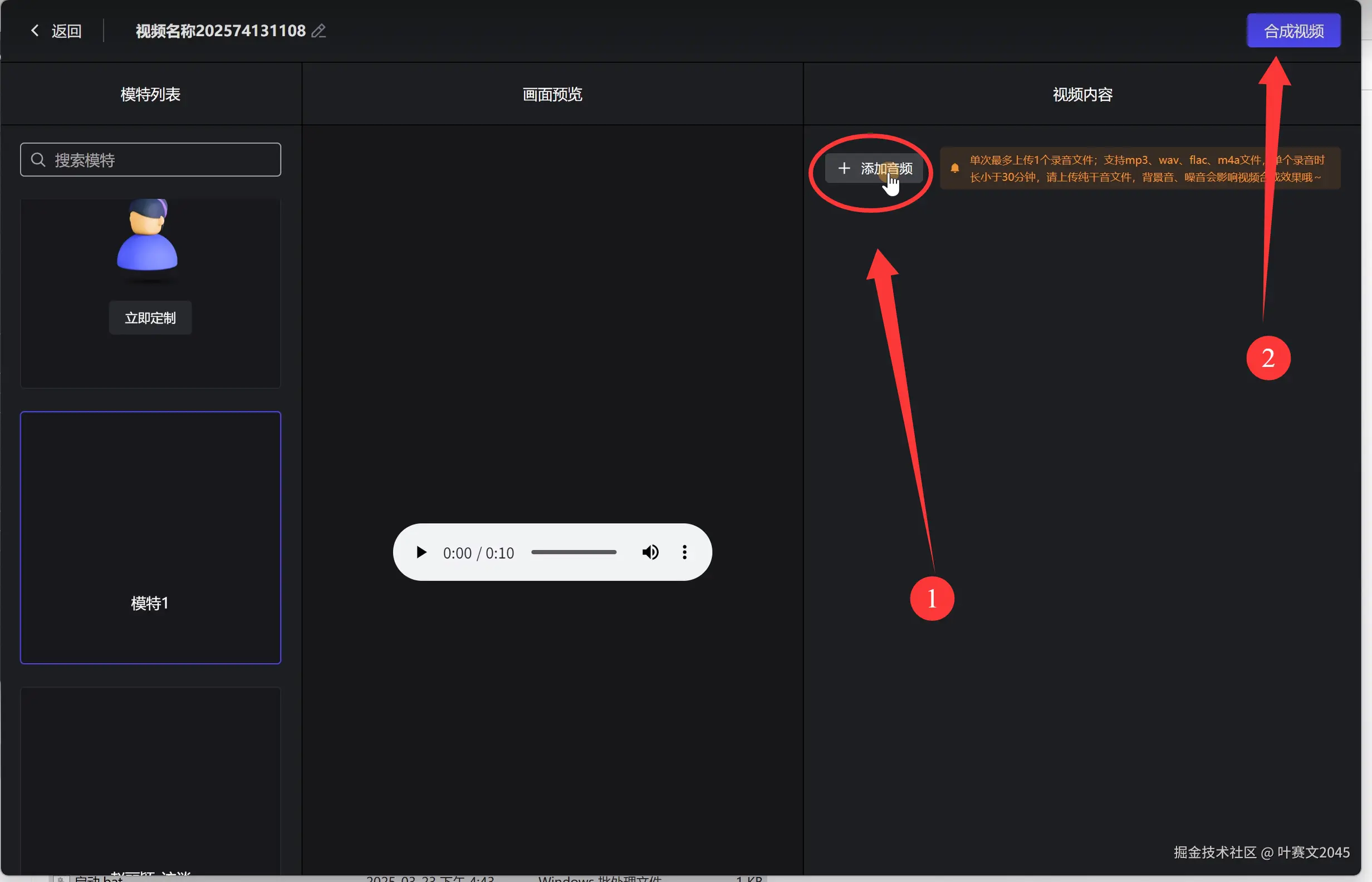 ② 点击“合成视频”