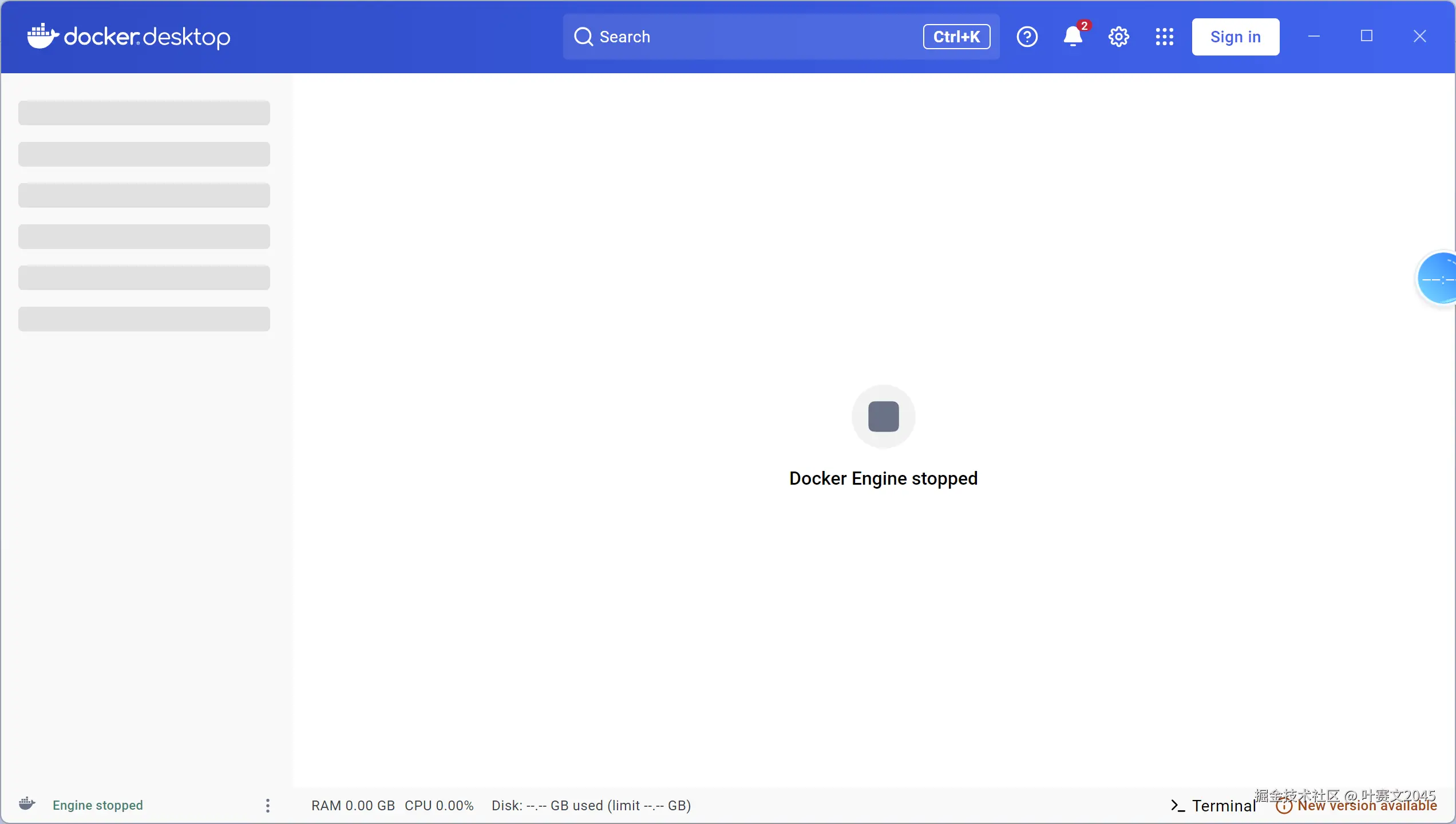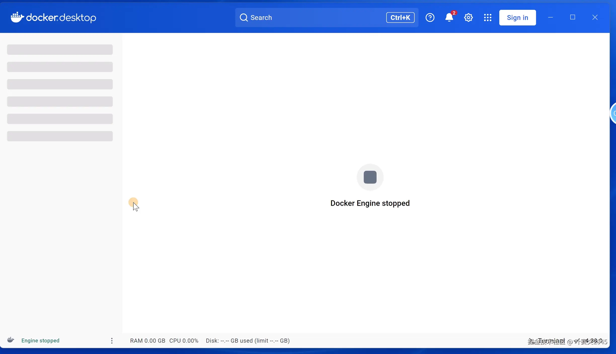 会出现这个界面:docker engine stopped。
