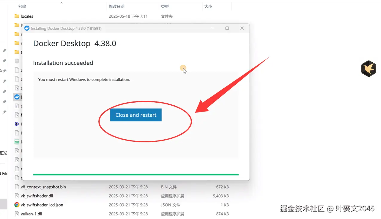 单击“close and restart”, 关闭并重启电脑
