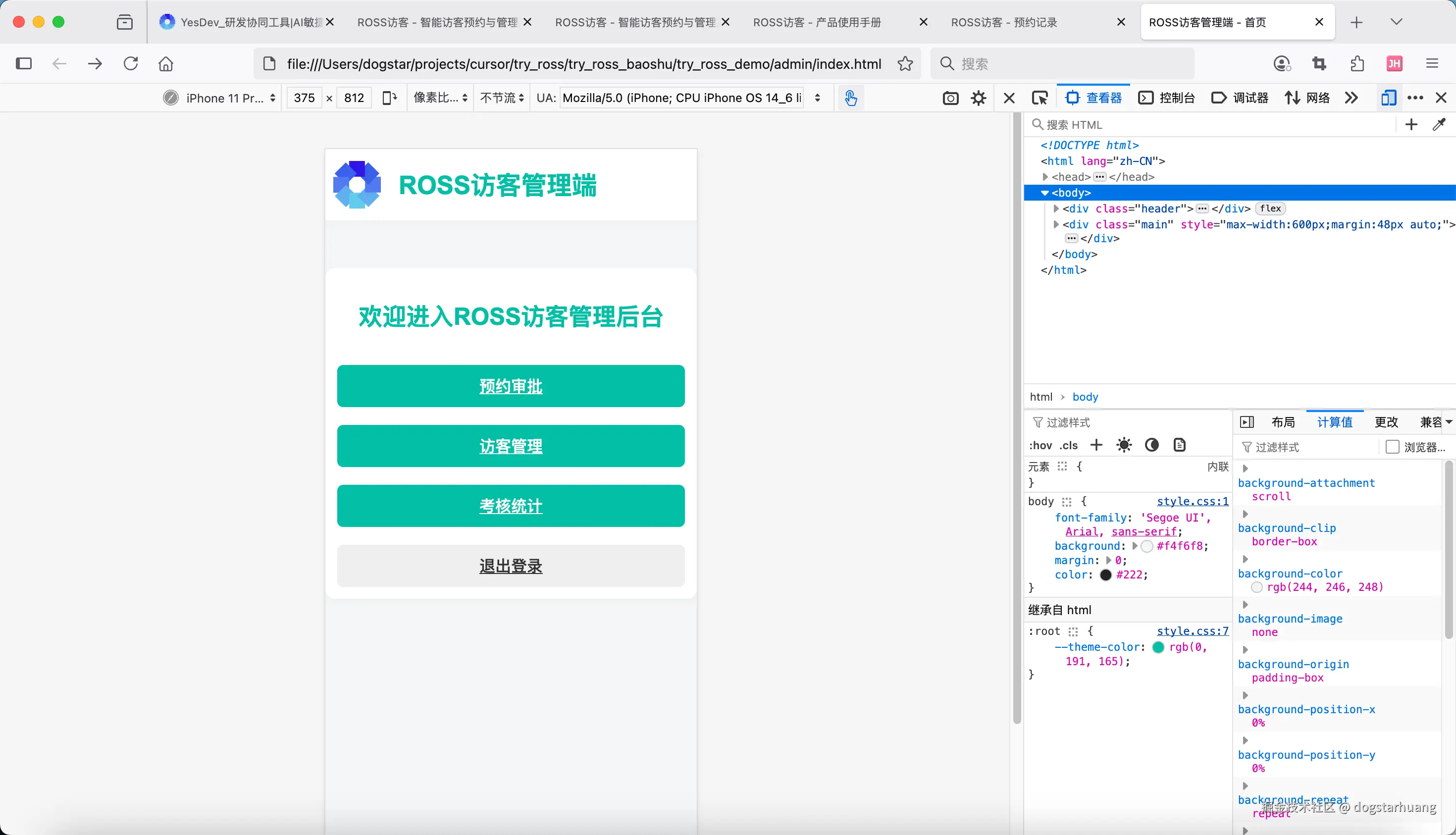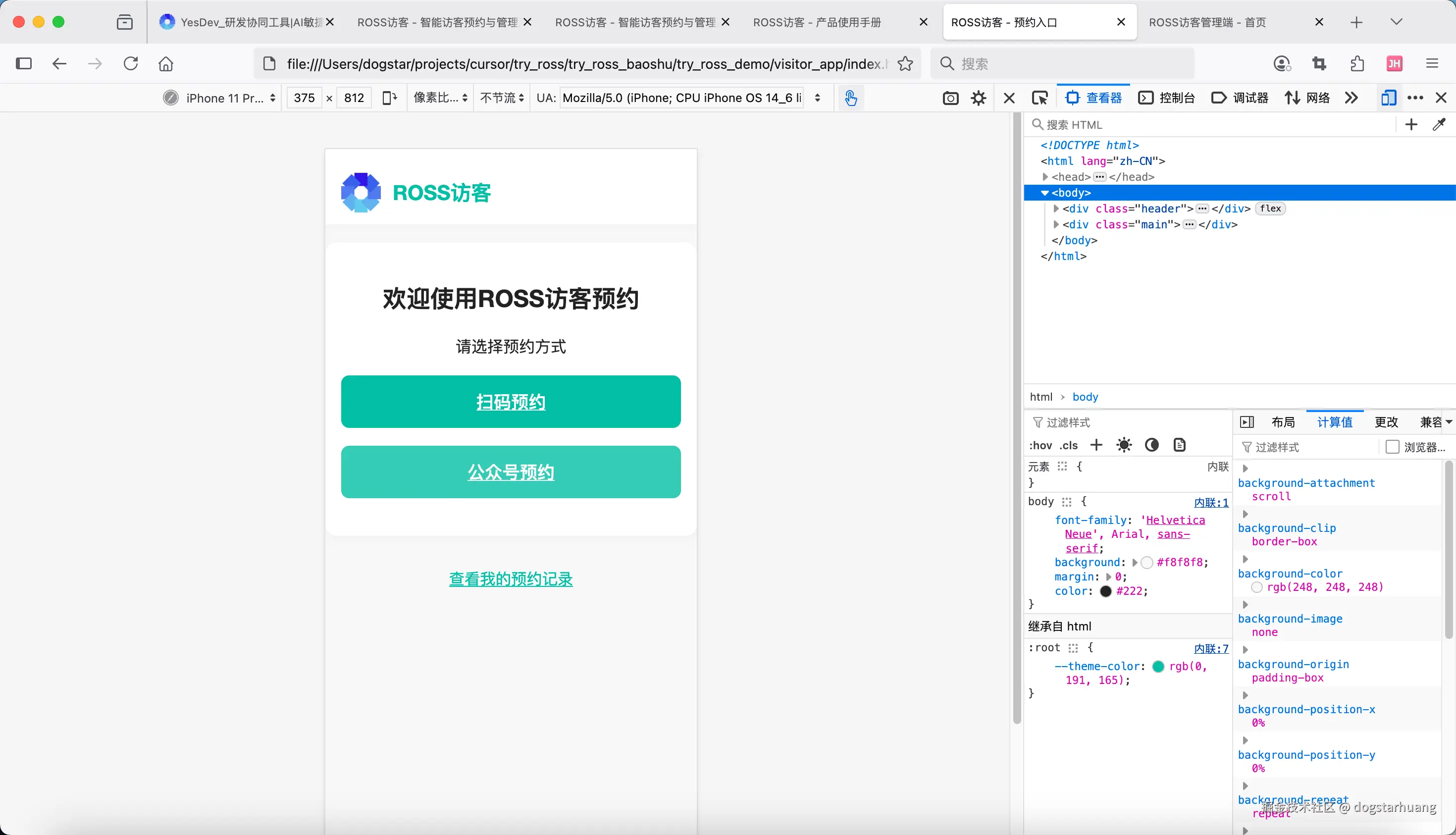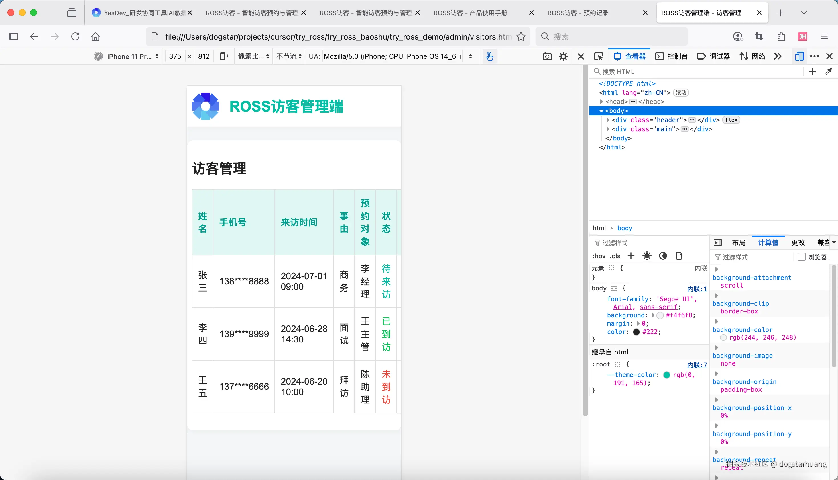 如果还有什么不确定的,可以问我。没问题,请开始!项目名称统一用:ROSS访客