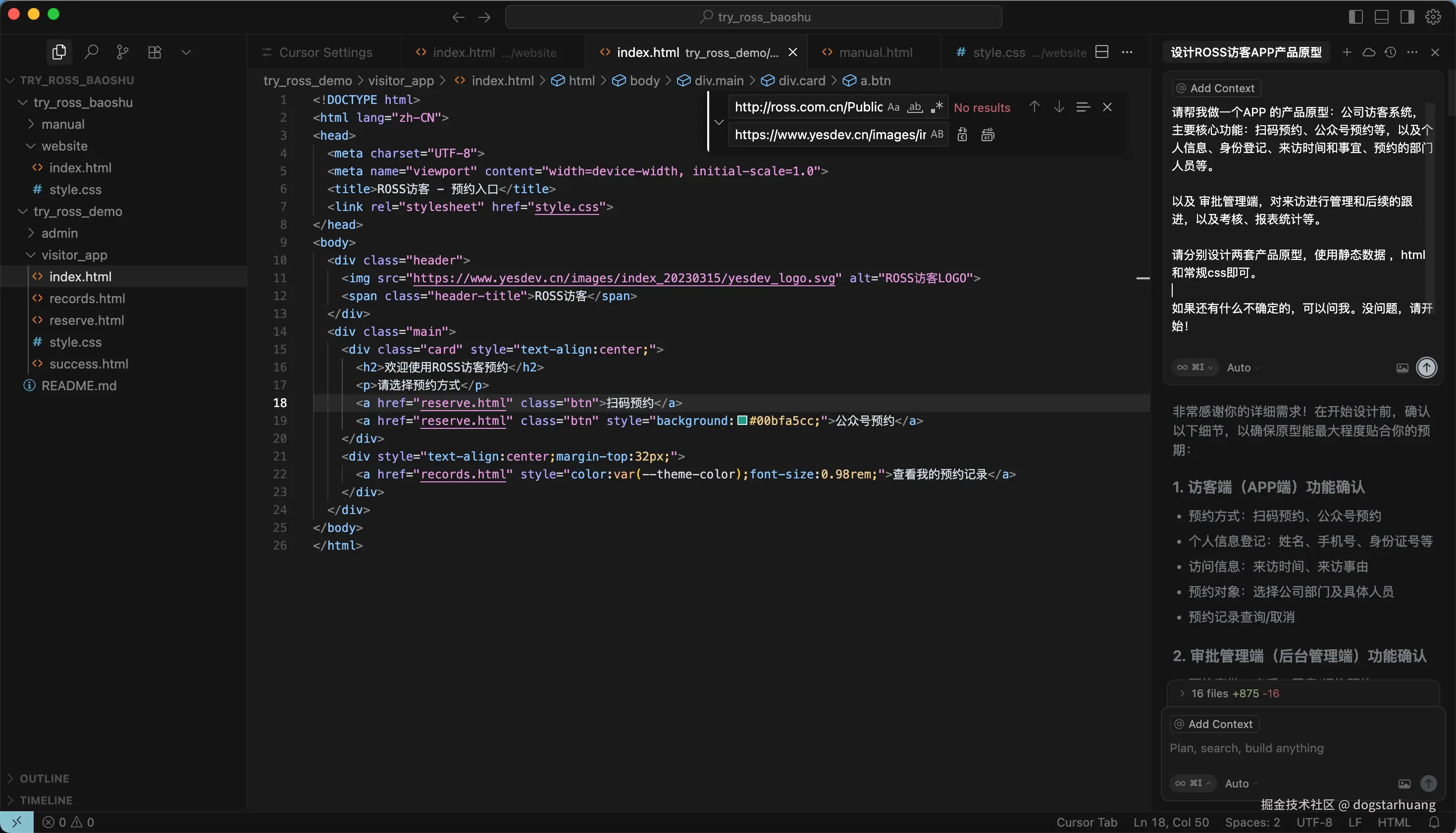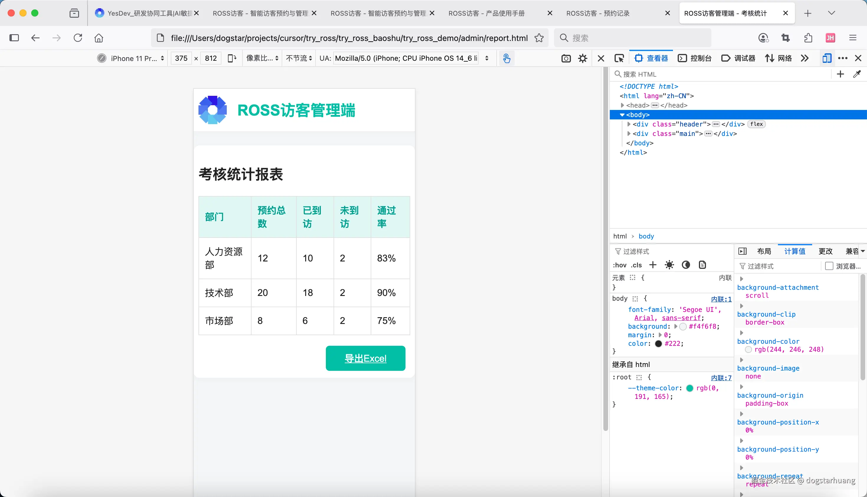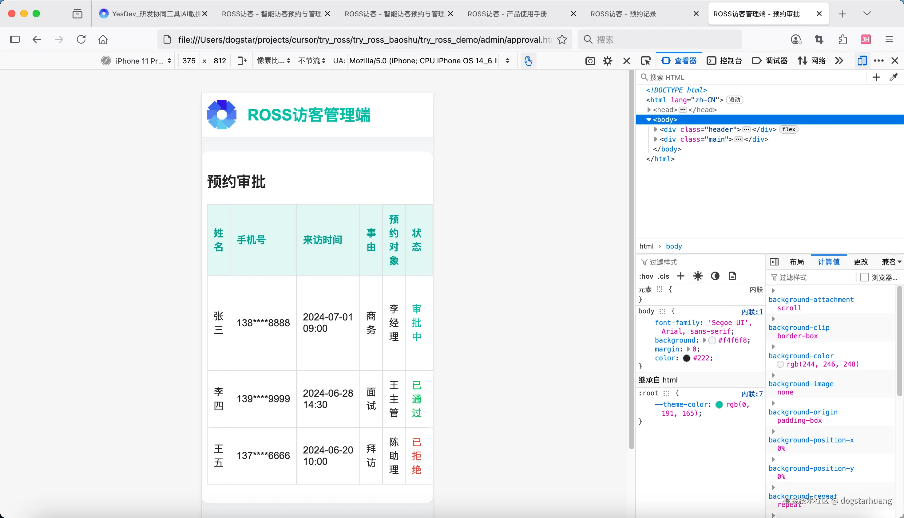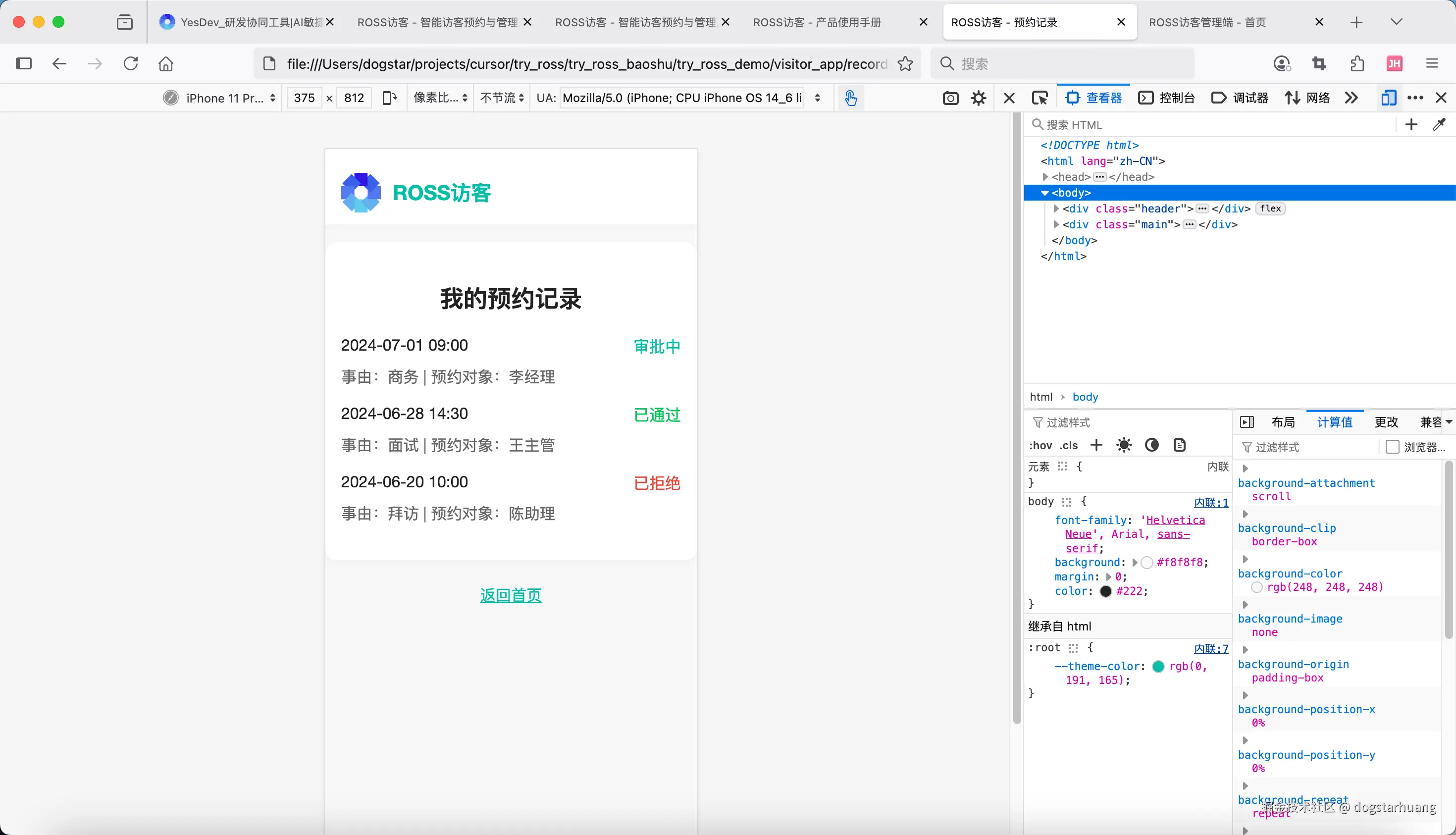 如果还有什么不确定的,可以问我。没问题,请开始!项目名称统一用:ROSS访客