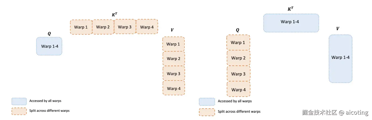- Consumer Warp:专门负责计算,如 QK^T、softmax、乘 V。