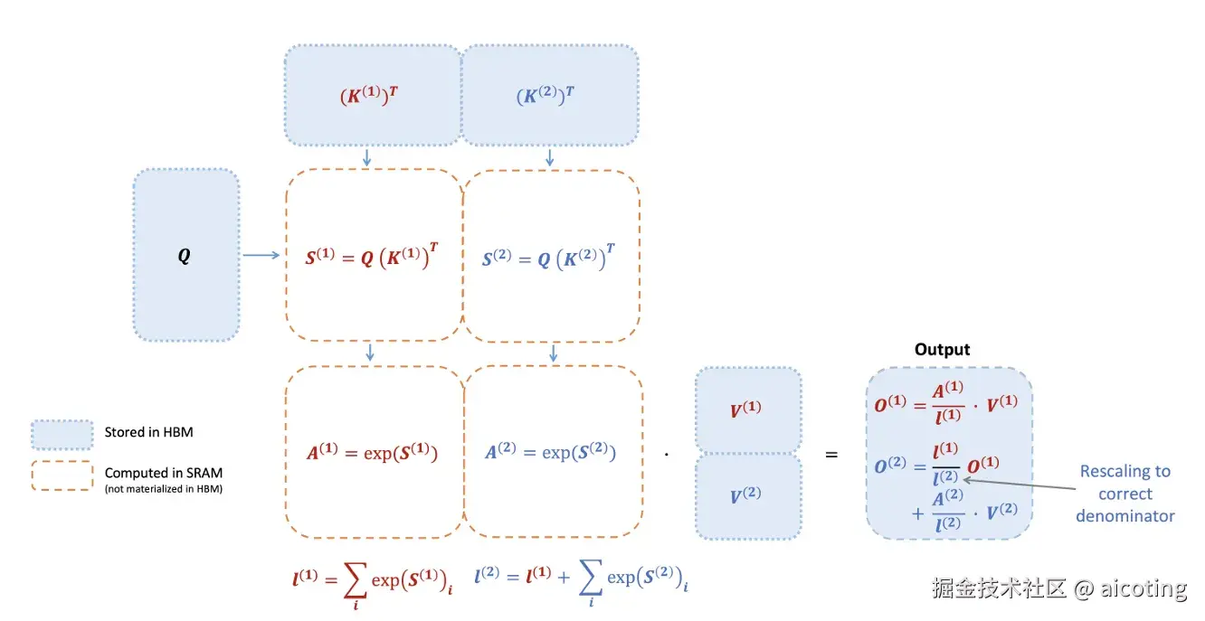 - 将输入序列划分为小块(tiles),分批次计算 attention 分数。