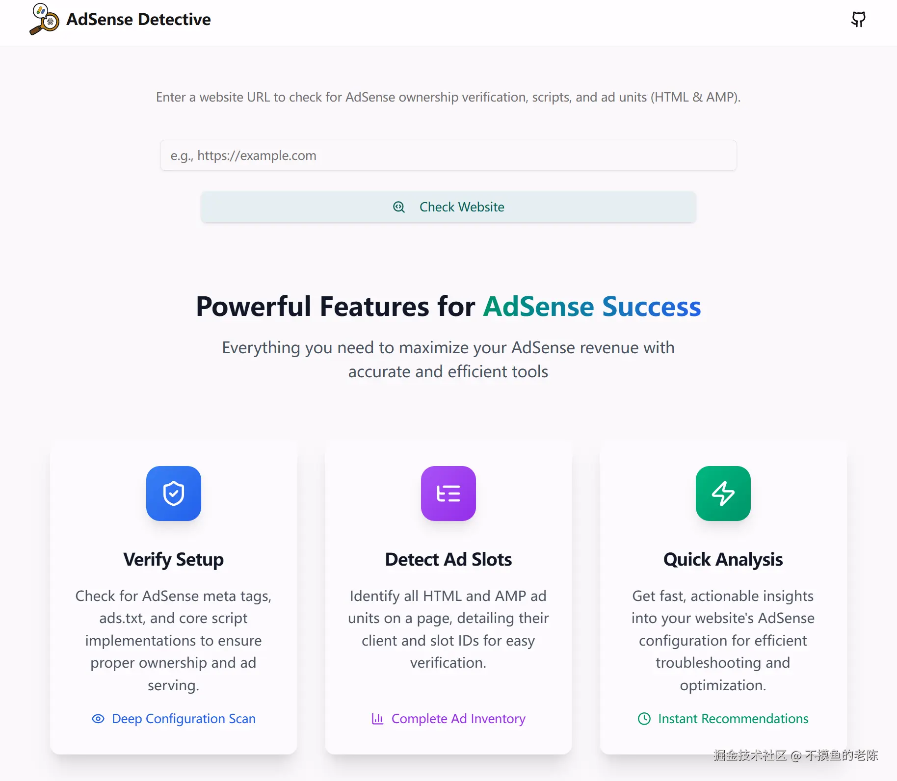 AdSense Detective是一款Google AdSense检查工具,快速检测网站的AdSense集成情况,包括验证状态、广告脚本扫描和广告代码片段检测。