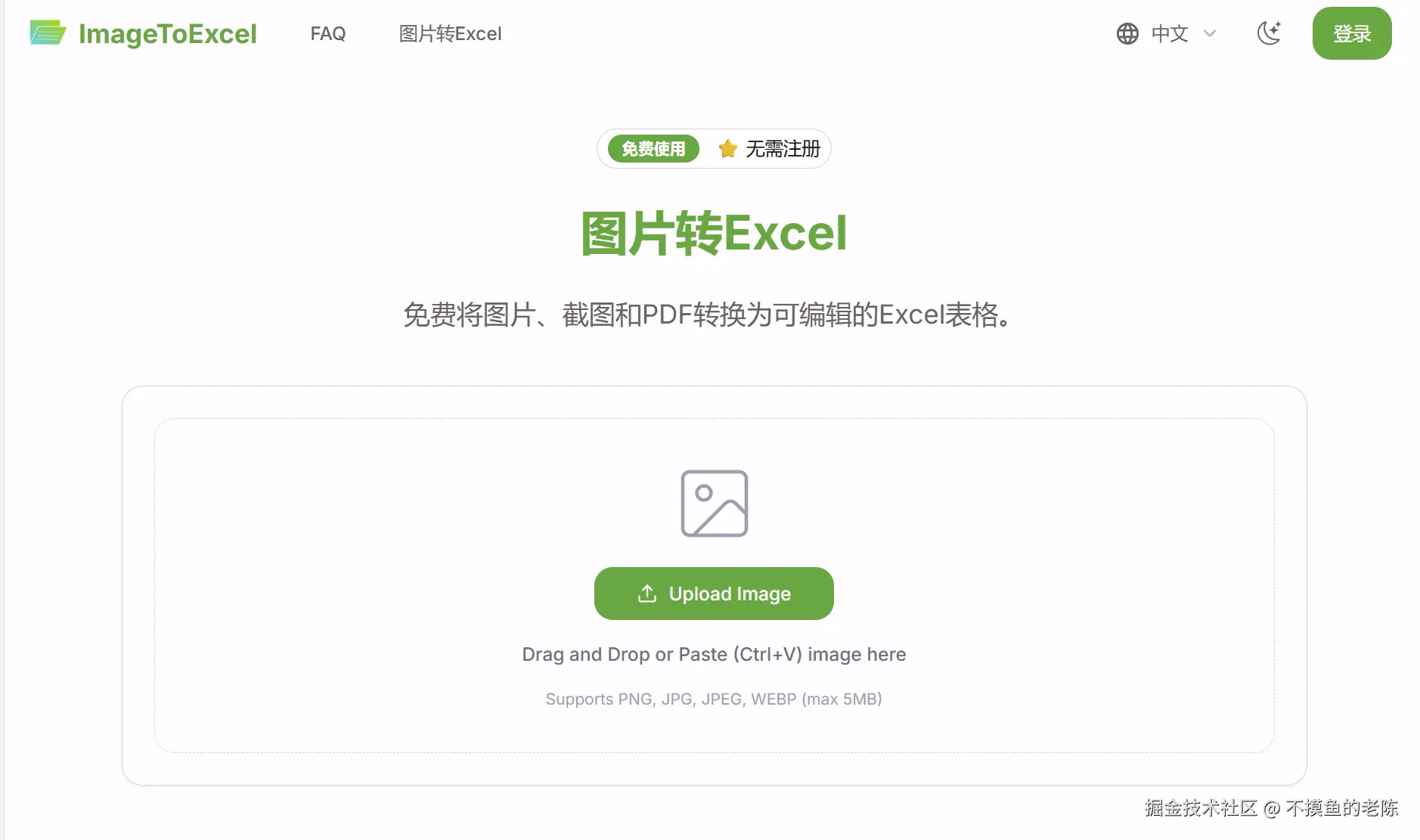 Image To Excel是一款免费的在线工具,可以将图片转换为Excel电子表格,轻松提取数据,无需注册。