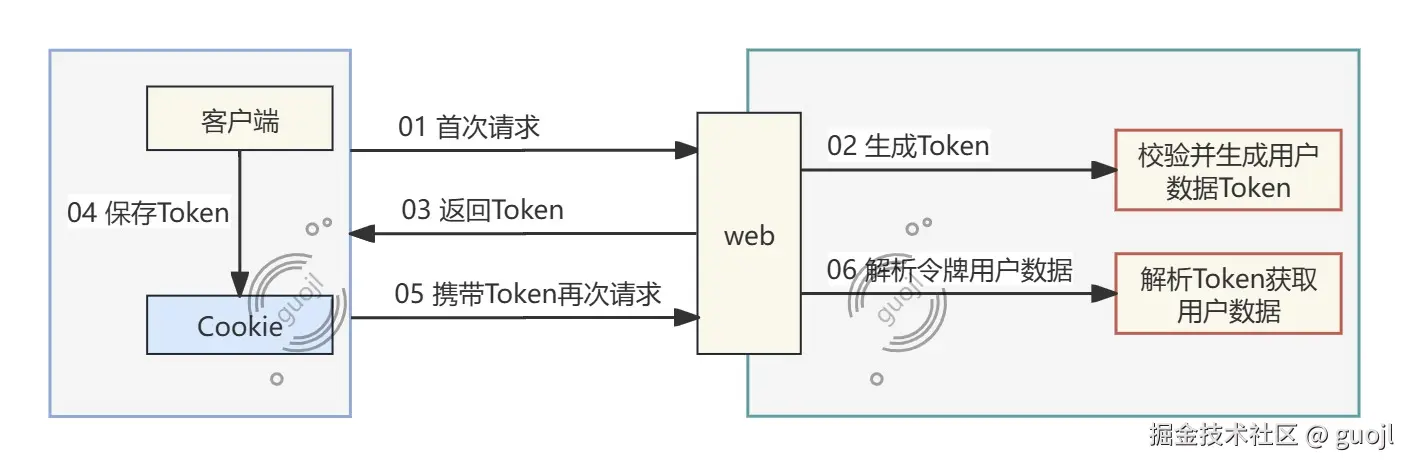 Token认证交互流程是,服务端用户认证成功生成Token发给客户端,客户端接收到Token认证数据存储到Cookie或LocalStorage。客户端每次请求携带Token,服务端接收到Token通过验证后即可确认用户身份。