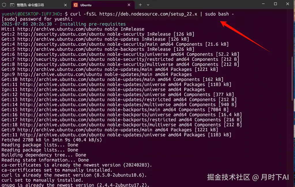 curl -fsSL https://deb.nodesource.com/setup_22.x | sudo bash -