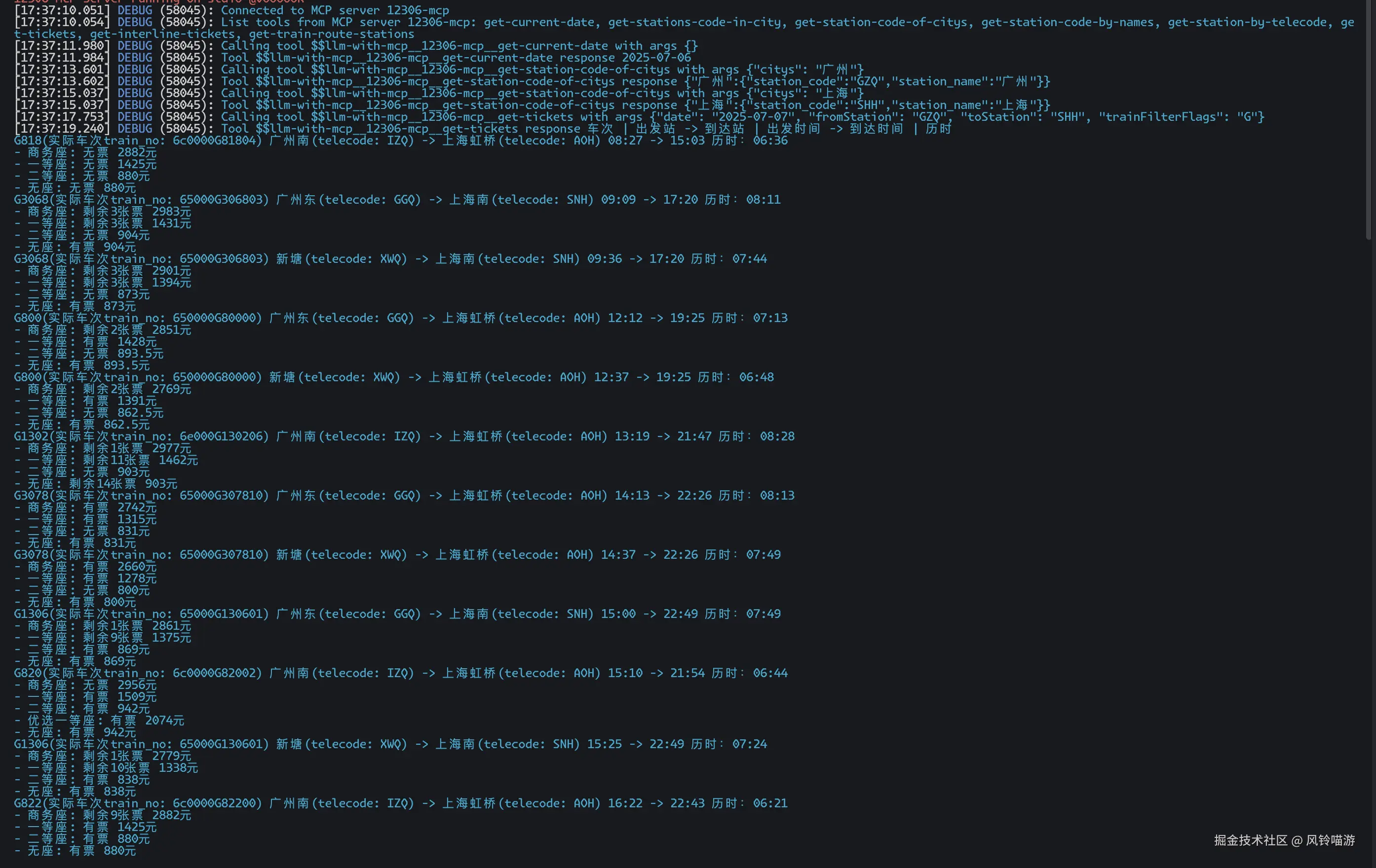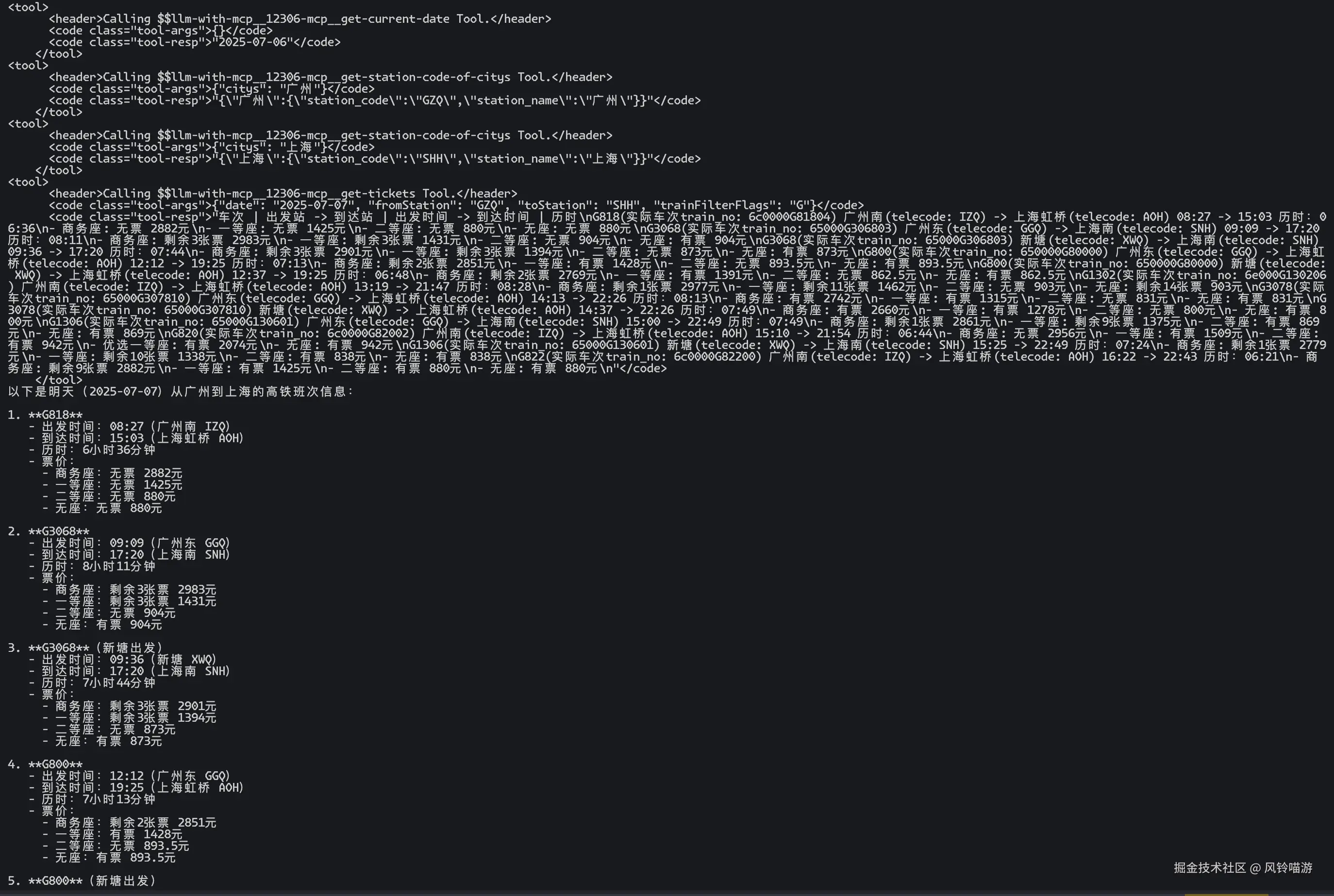 这样我们就完成了 openai + MCP 工具调用的封装,现在我们就可以在业务中非常方便的调用了: