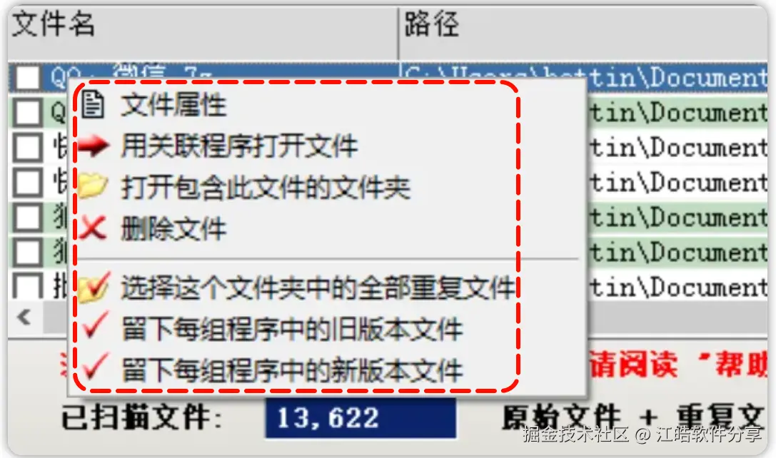 在处理方式上,你既可以打开查看具体文件,也可以一键全选某组重复项;还能选择保留每组中的旧文件或新文件。