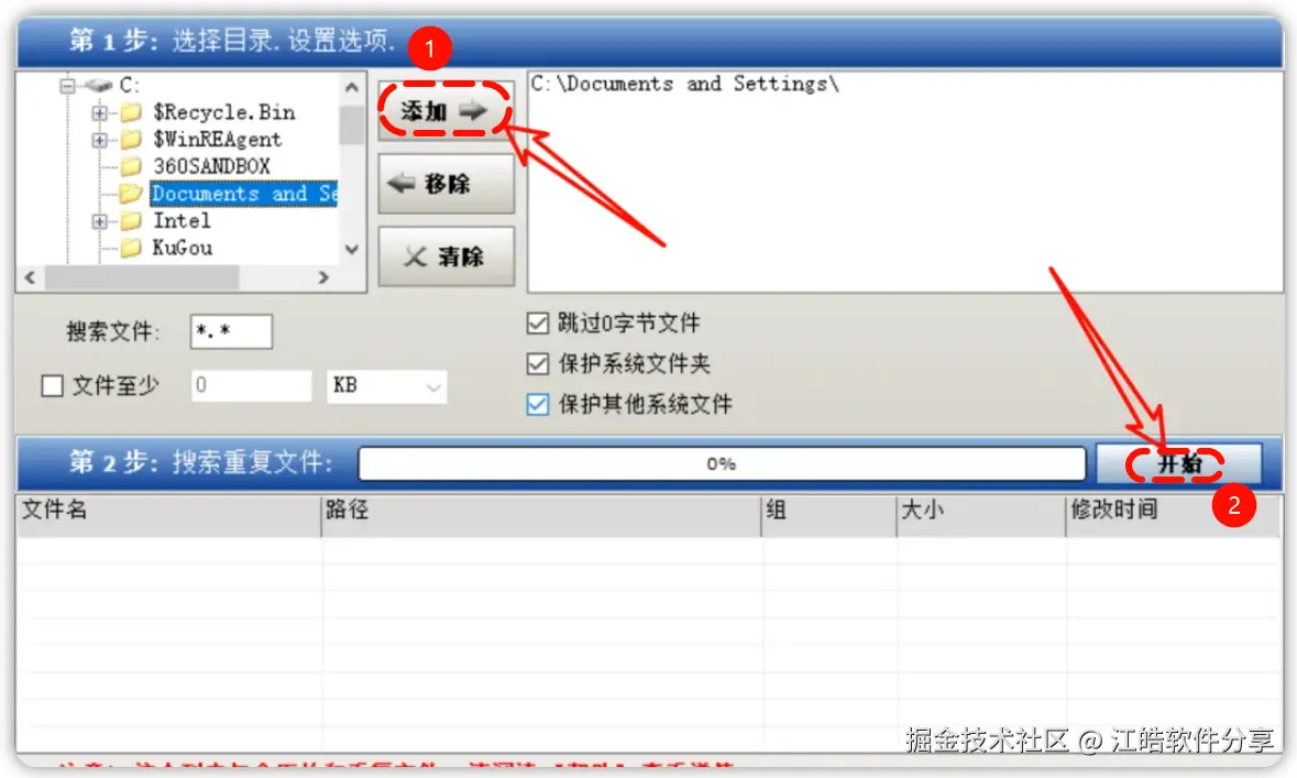 操作流程也十分直观:选定需要扫描的目录,点击“添加”,再按下“开始”按钮,程序便会自动搜索该路径下的所有重复内容。